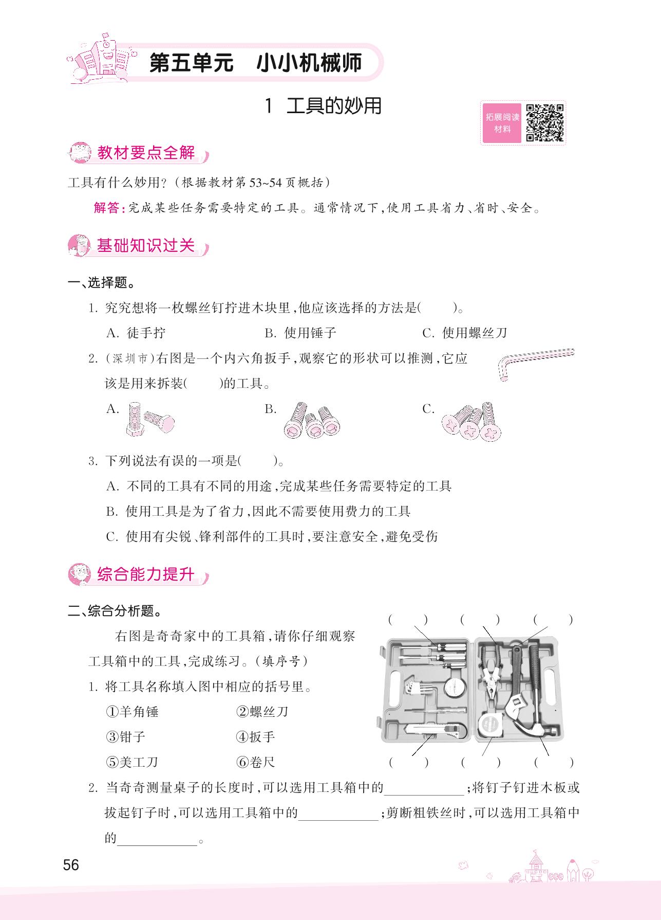 2022上册五年级科学大象版 第五单元 小小机械师——1 工具的妙用