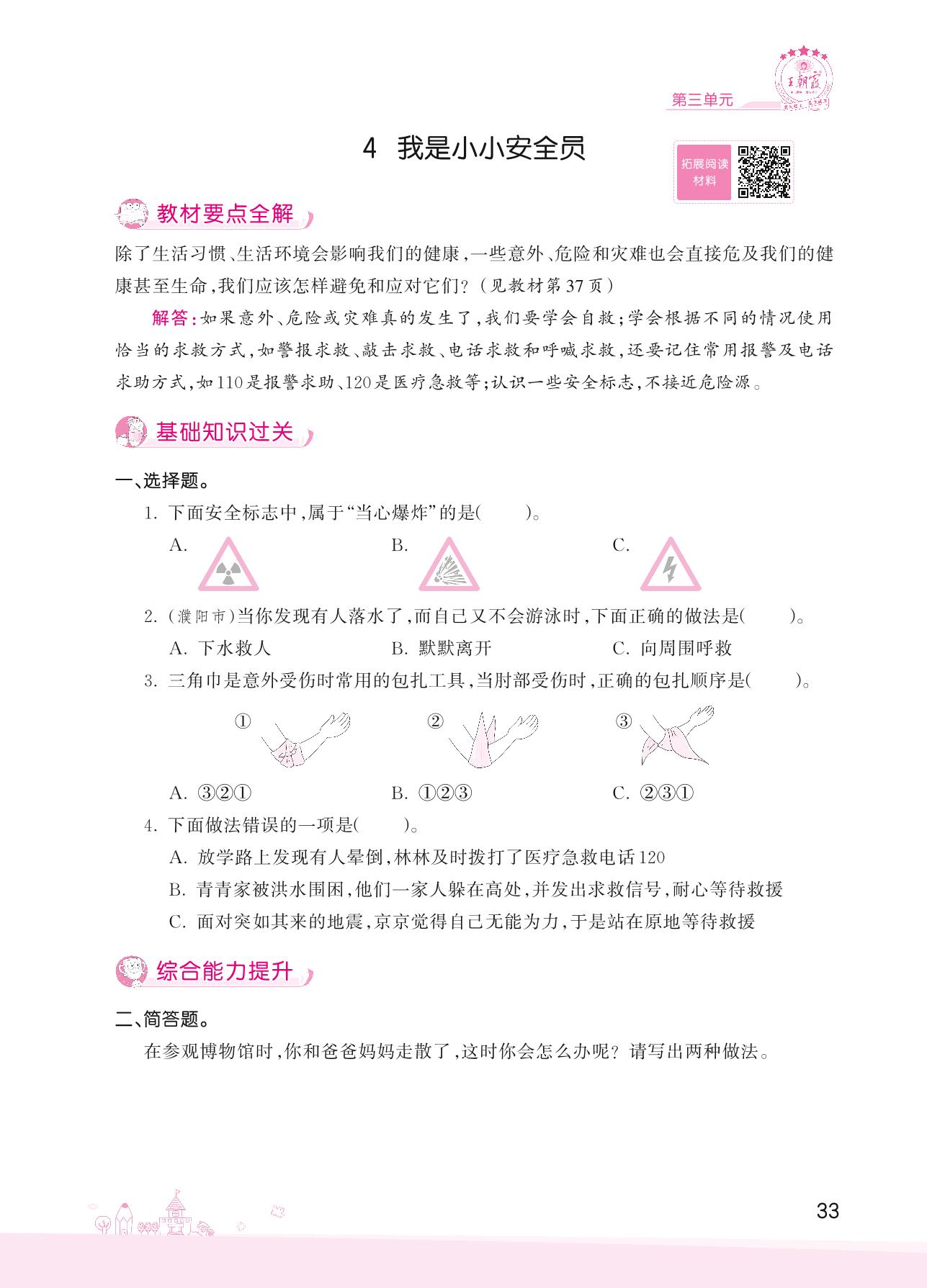 2022上册五年级科学大象版 第三单元 健康成长——4 我是小小安全员