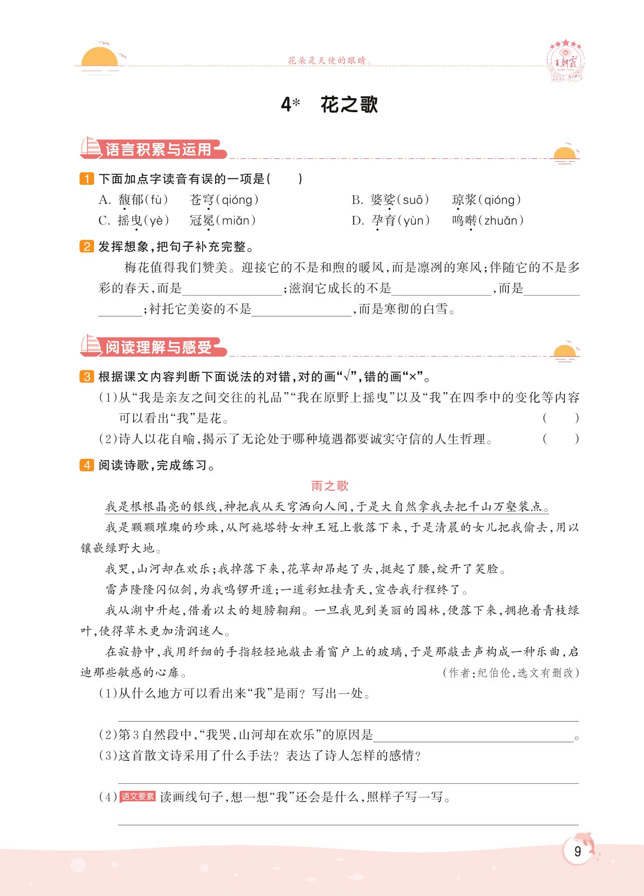 2022上册六年级语文人教版 第一单元 触摸自然——4 花之歌