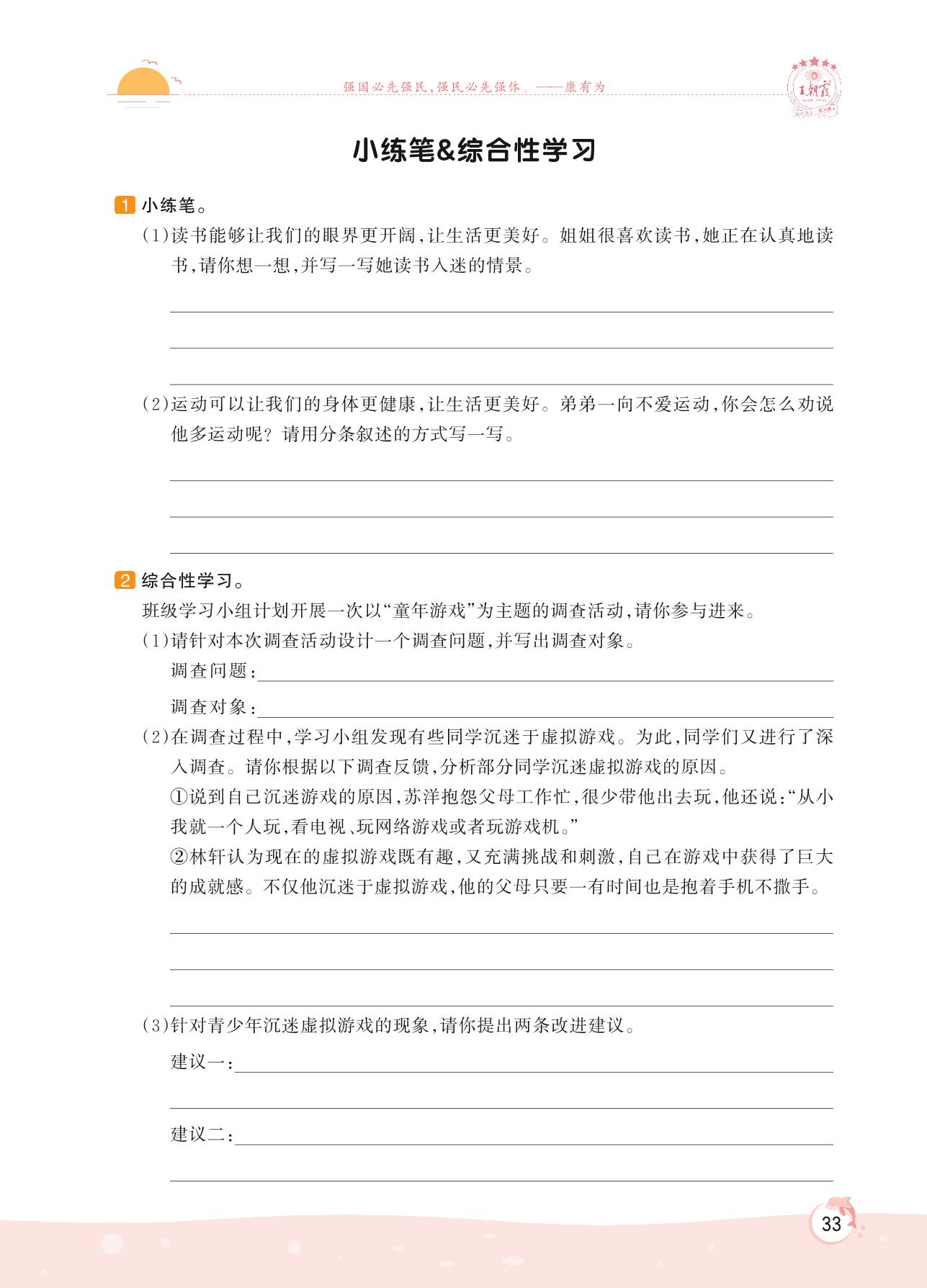 2022上册六年级语文人教版 第三单元 阅读策略 有目的地阅读——小练笔&综合性学习 (语用提升)
