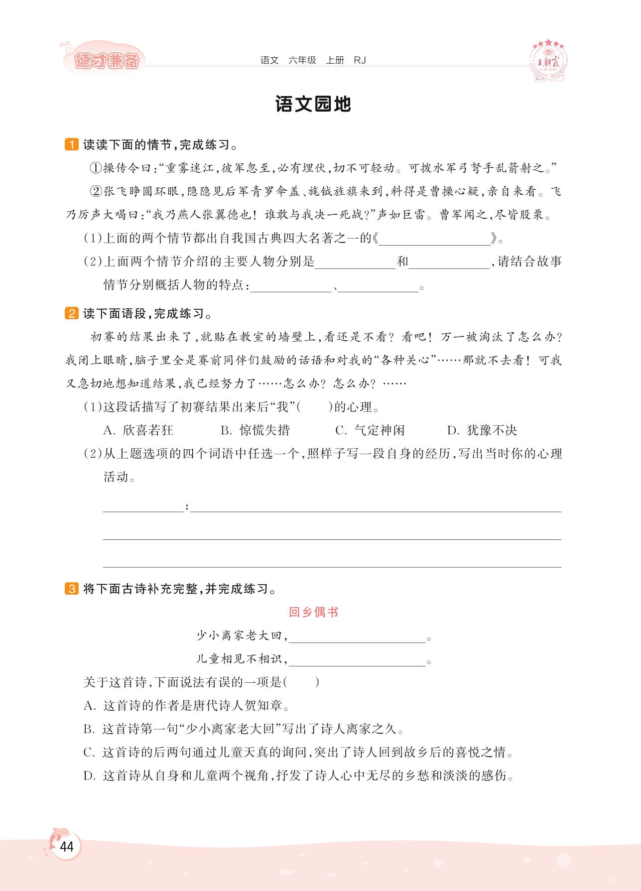 2022上册六年级语文人教版 第四单元 中外小说——语文园地