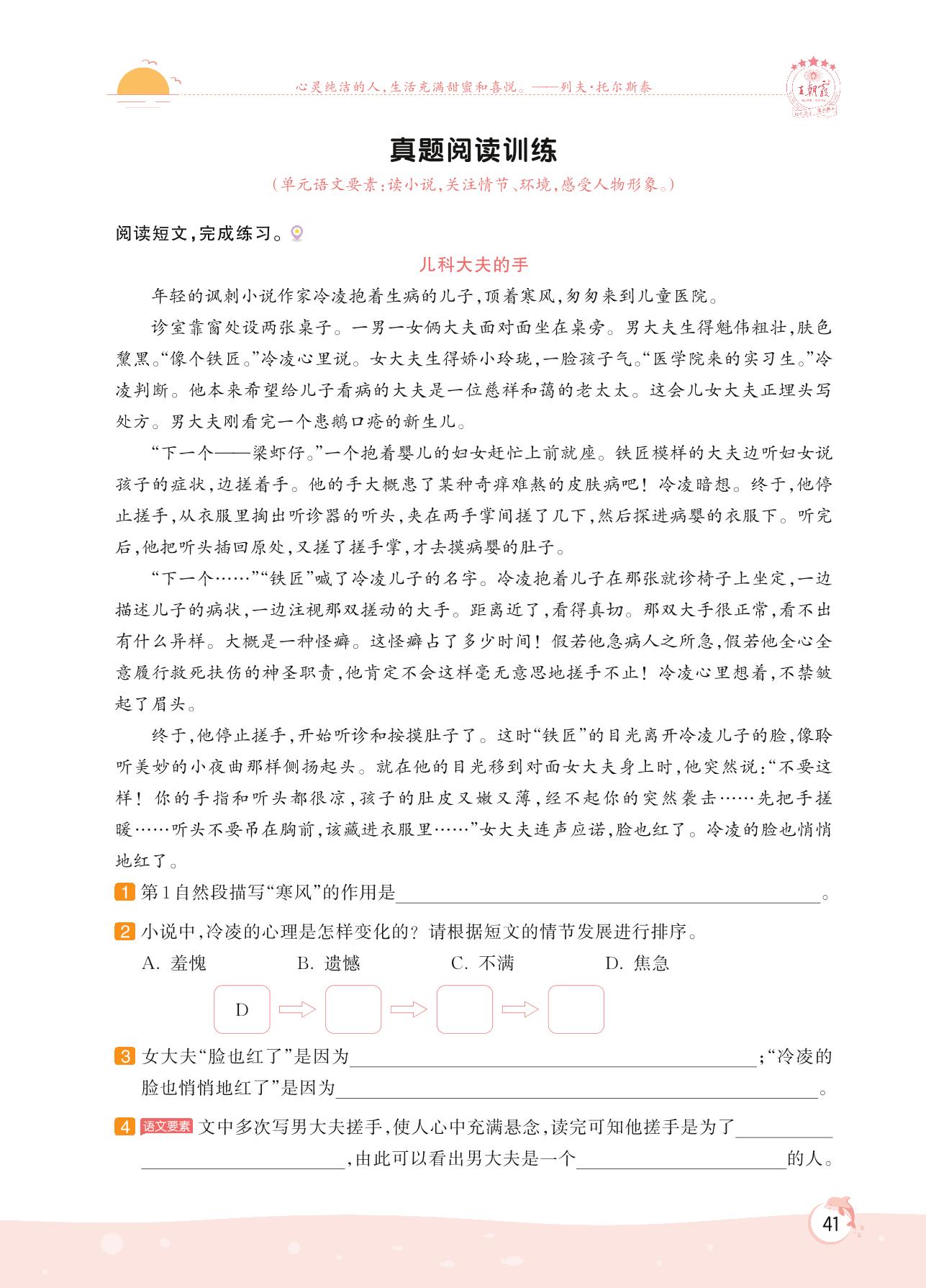 2022上册六年级语文人教版 第四单元 中外小说——真题阅读训练(阅读提升)