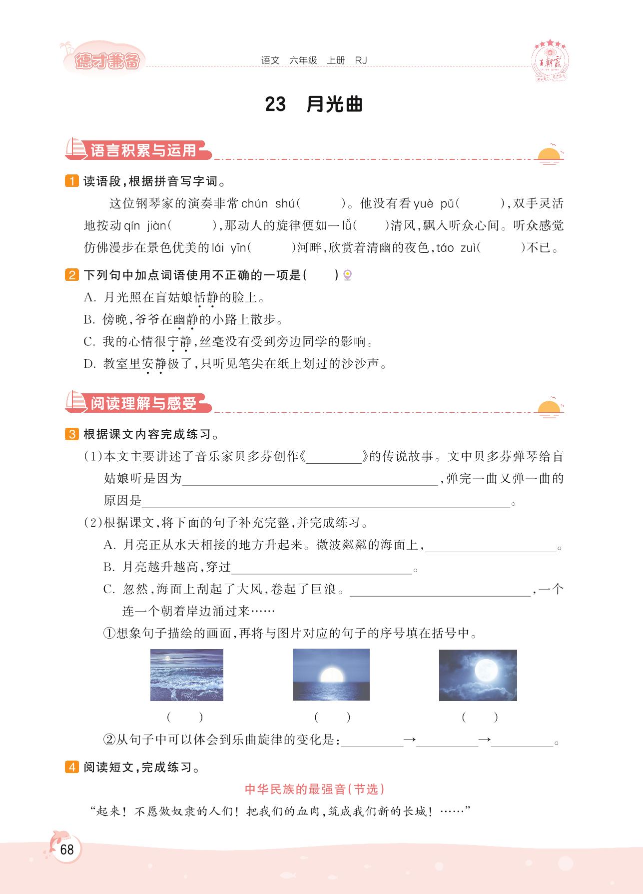 2022上册六年级语文人教版 第七单元 艺术之美——23 月光曲