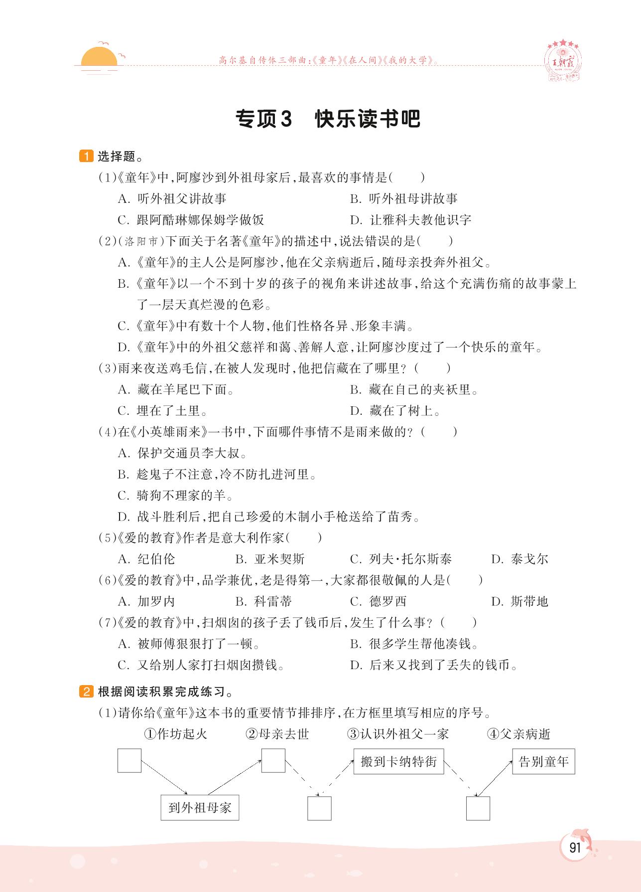 2022上册六年级语文人教版 新颖题视野 专项训练——专项3 快乐读书吧