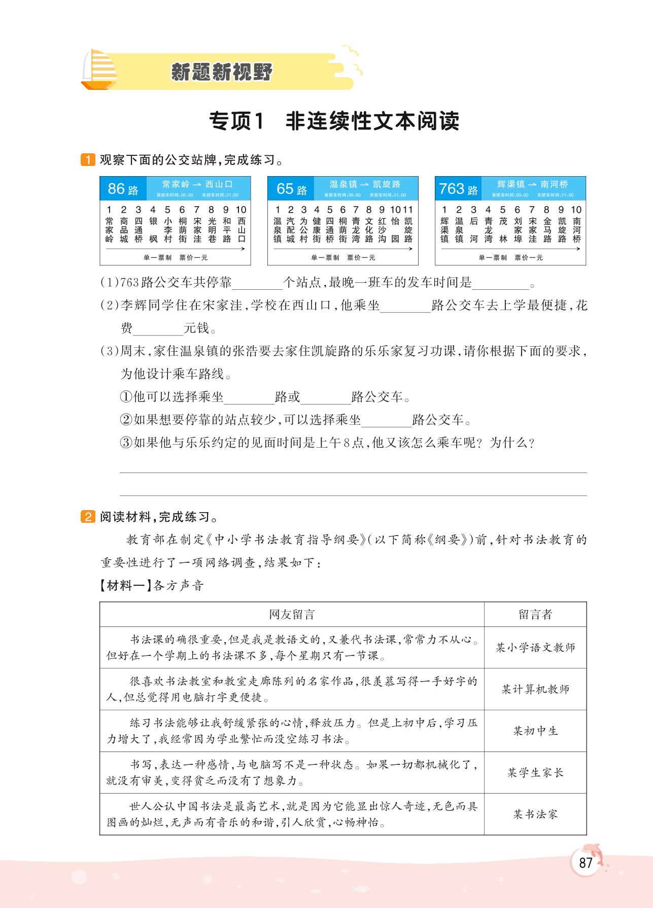 2022上册六年级语文人教版 新颖题视野 专项训练——专项1 非连续性文本阅读