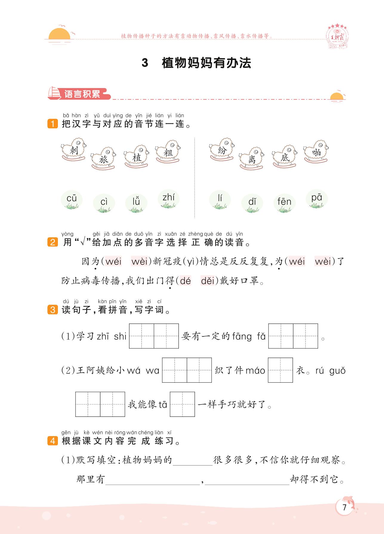 2022上册二年级语文人教版 第一单元 大自然的秘密——3 植物妈妈有办法