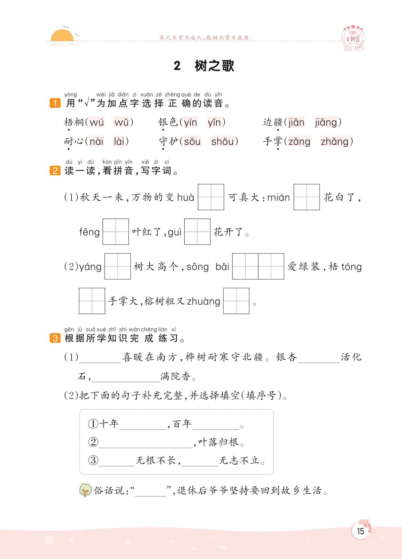 2022上册二年级语文人教版 第二单元 识字——2 树之歌