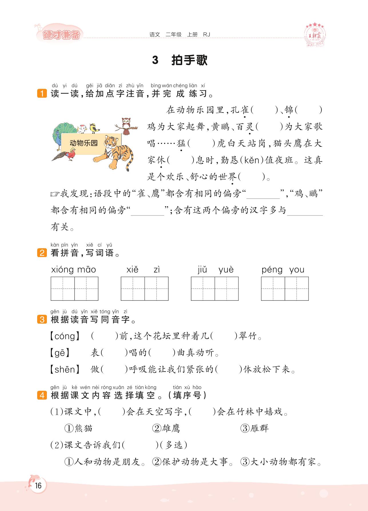 2022上册二年级语文人教版 第二单元 识字——3 拍手歌