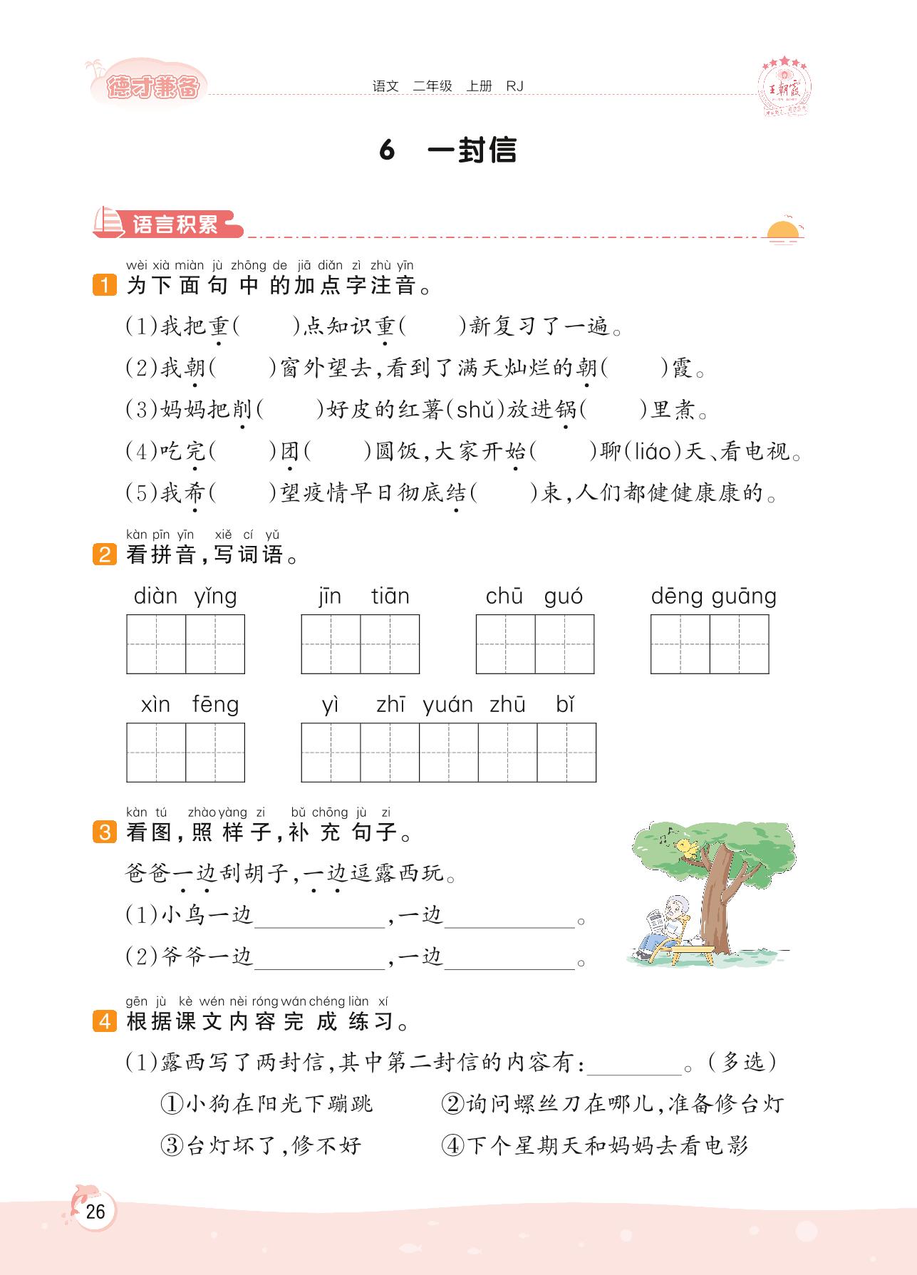 2022上册二年级语文人教版 第三单元 儿童生活——6 一封信