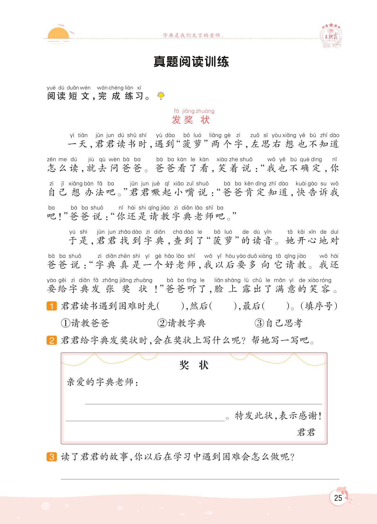 2022上册二年级语文人教版 第三单元 儿童生活——真题阅读训练(阅读提升)