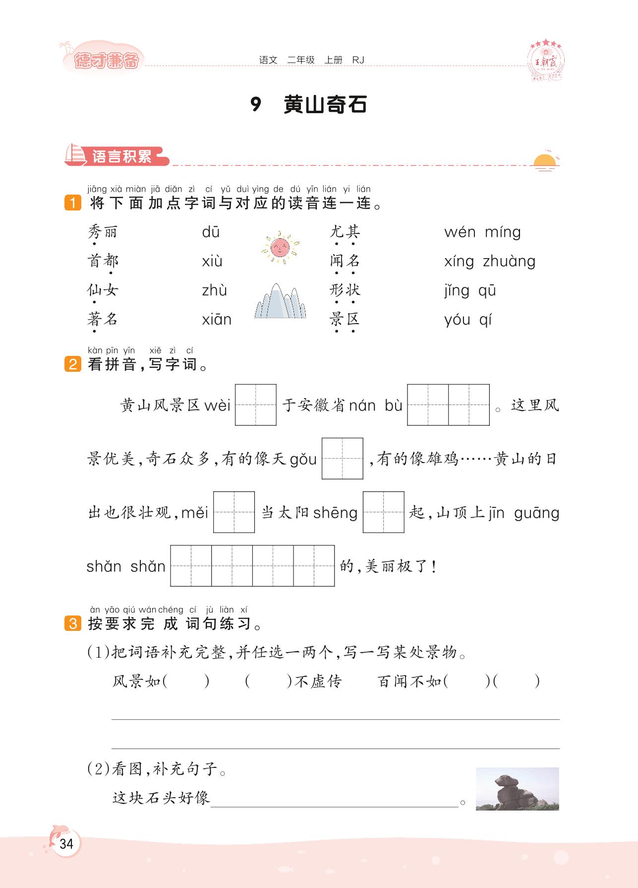 2022上册二年级语文人教版 第四单元 家乡——9 黄山奇石