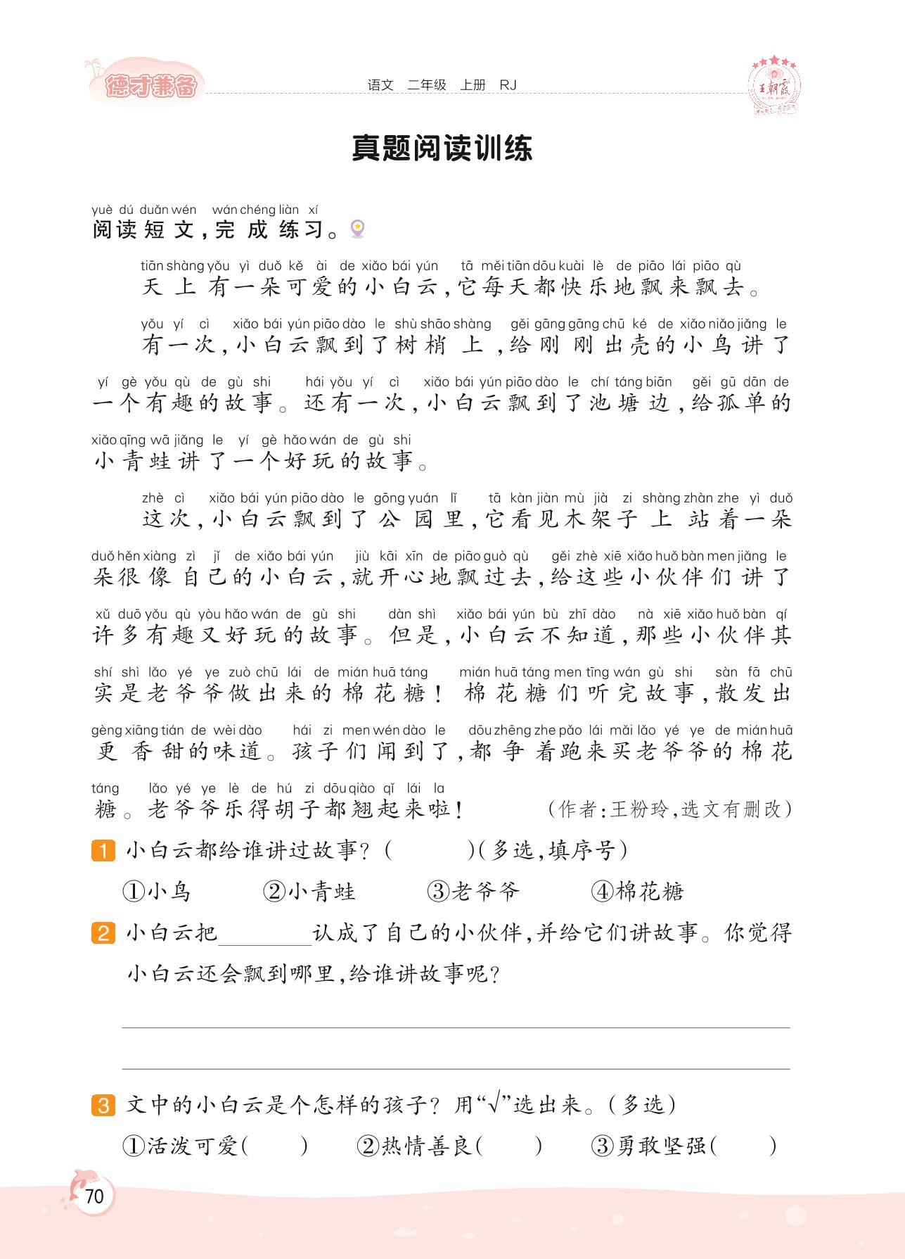 2022上册二年级语文人教版 第七单元 想象——真题阅读训练(阅读提升)