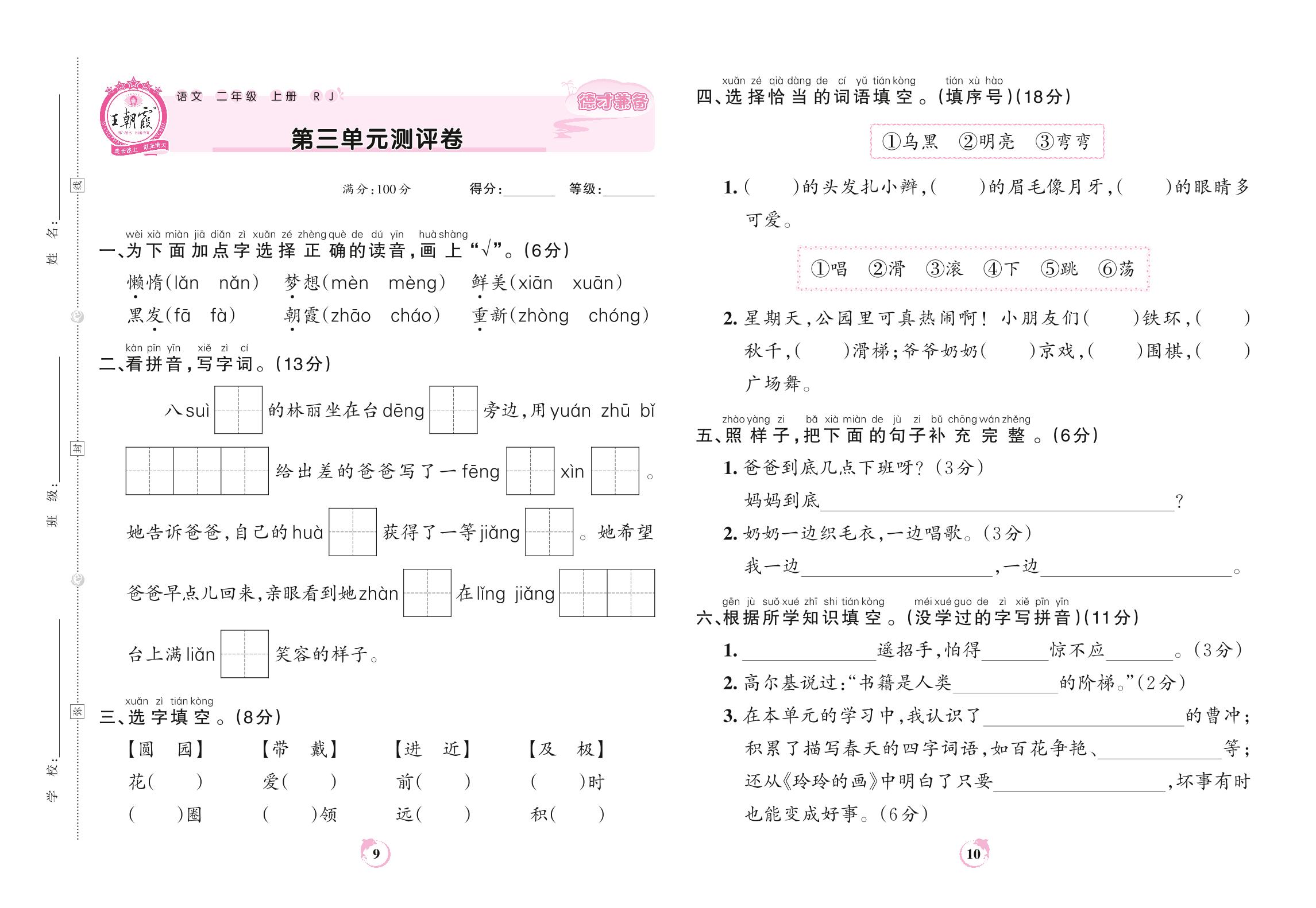 二年级语文人教版上册单元卷