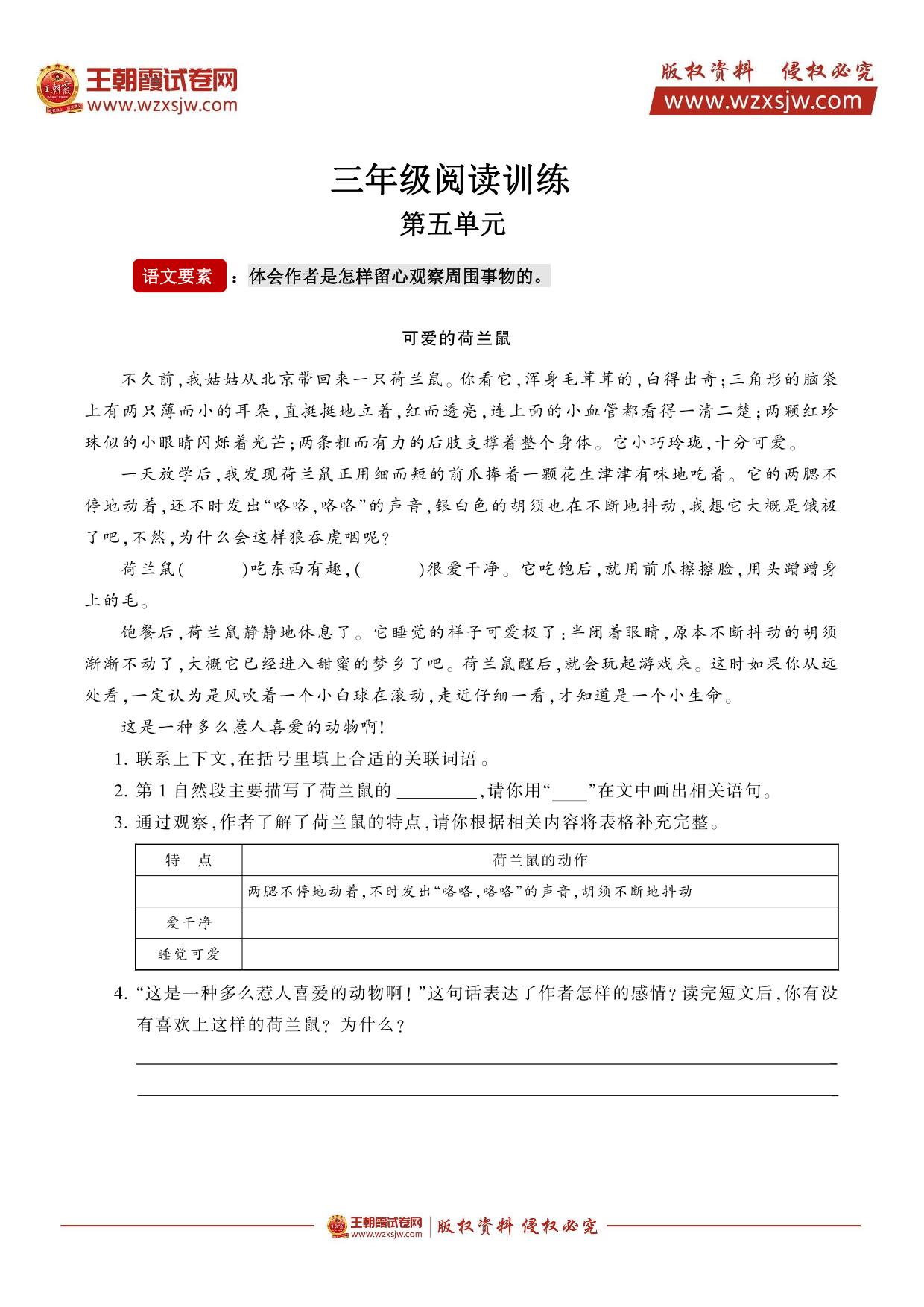 三年级语文阅读训练·第五单元