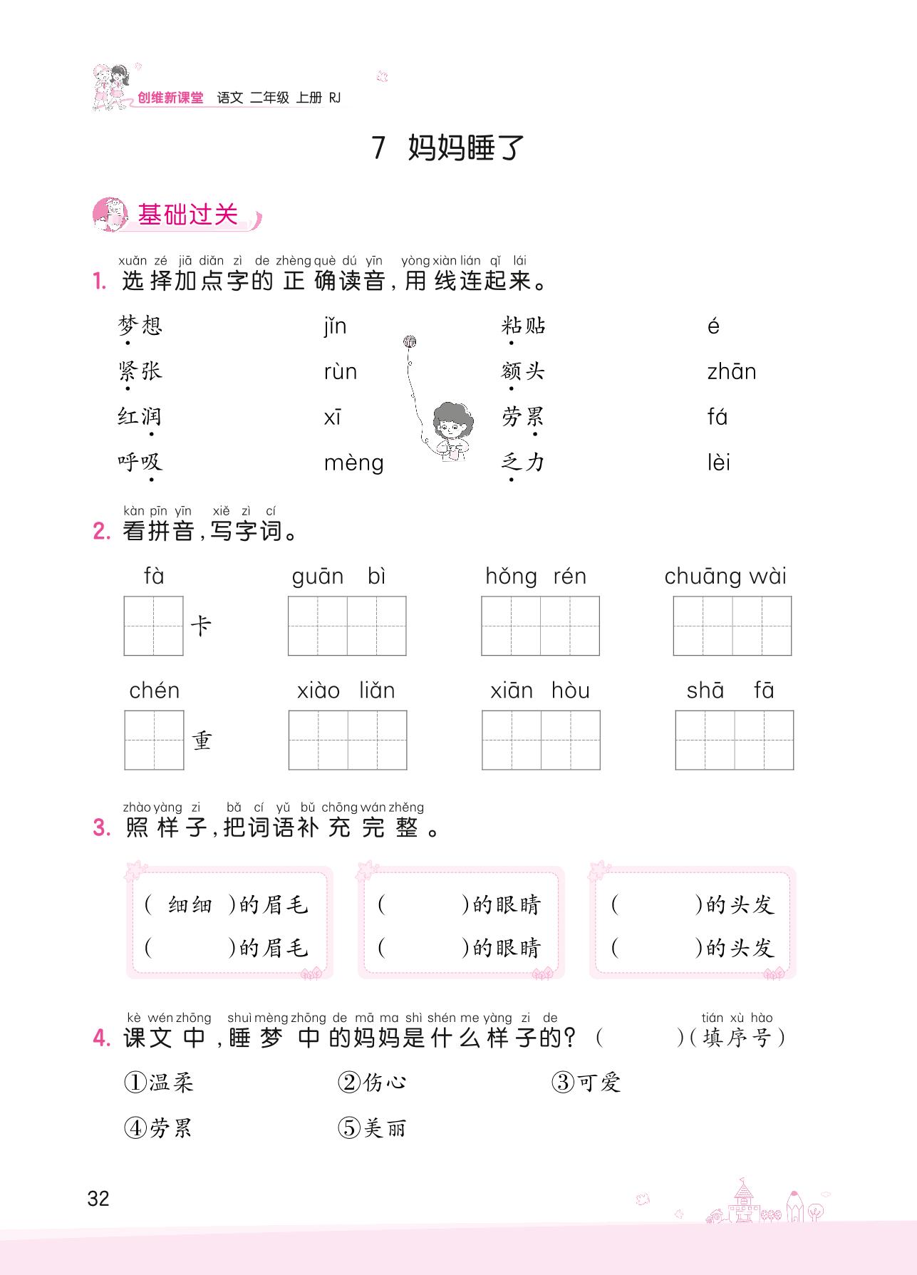 2022上册二年级语文人教版 第三单元 课文——7 妈妈睡了