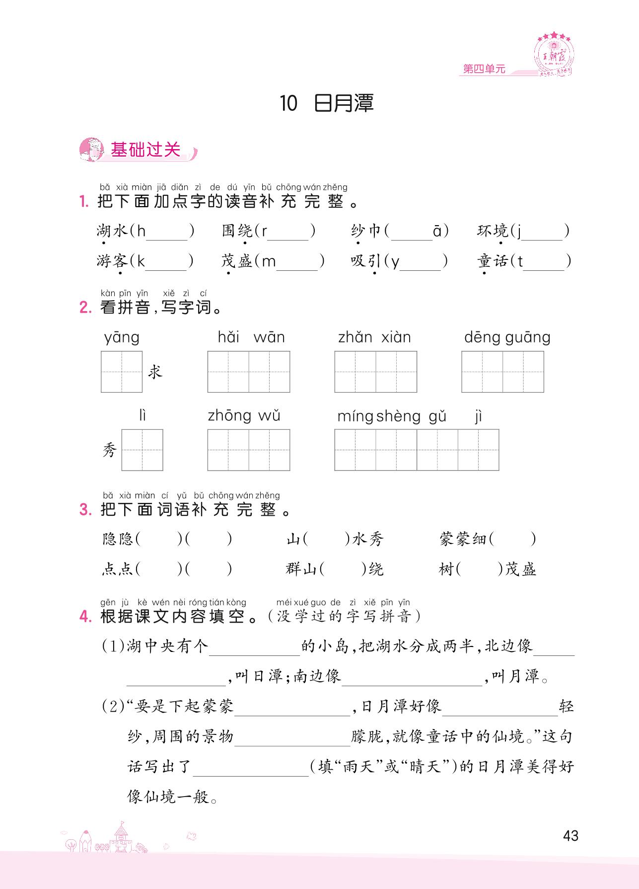 2022上册二年级语文人教版 第四单元 课文——10 日月潭