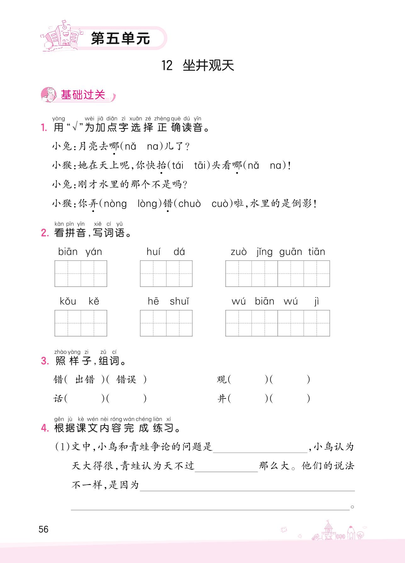 2022上册二年级语文人教版 第五单元 课文——12 坐井观天