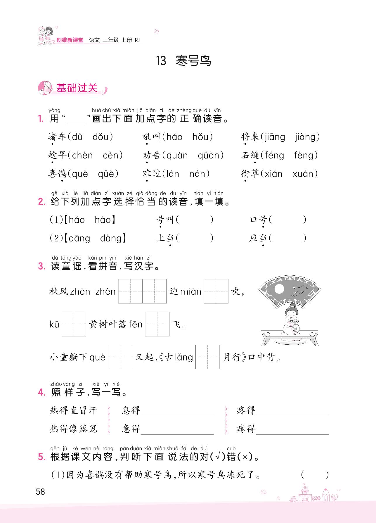 2022上册二年级语文人教版 第五单元 课文——13 寒号鸟
