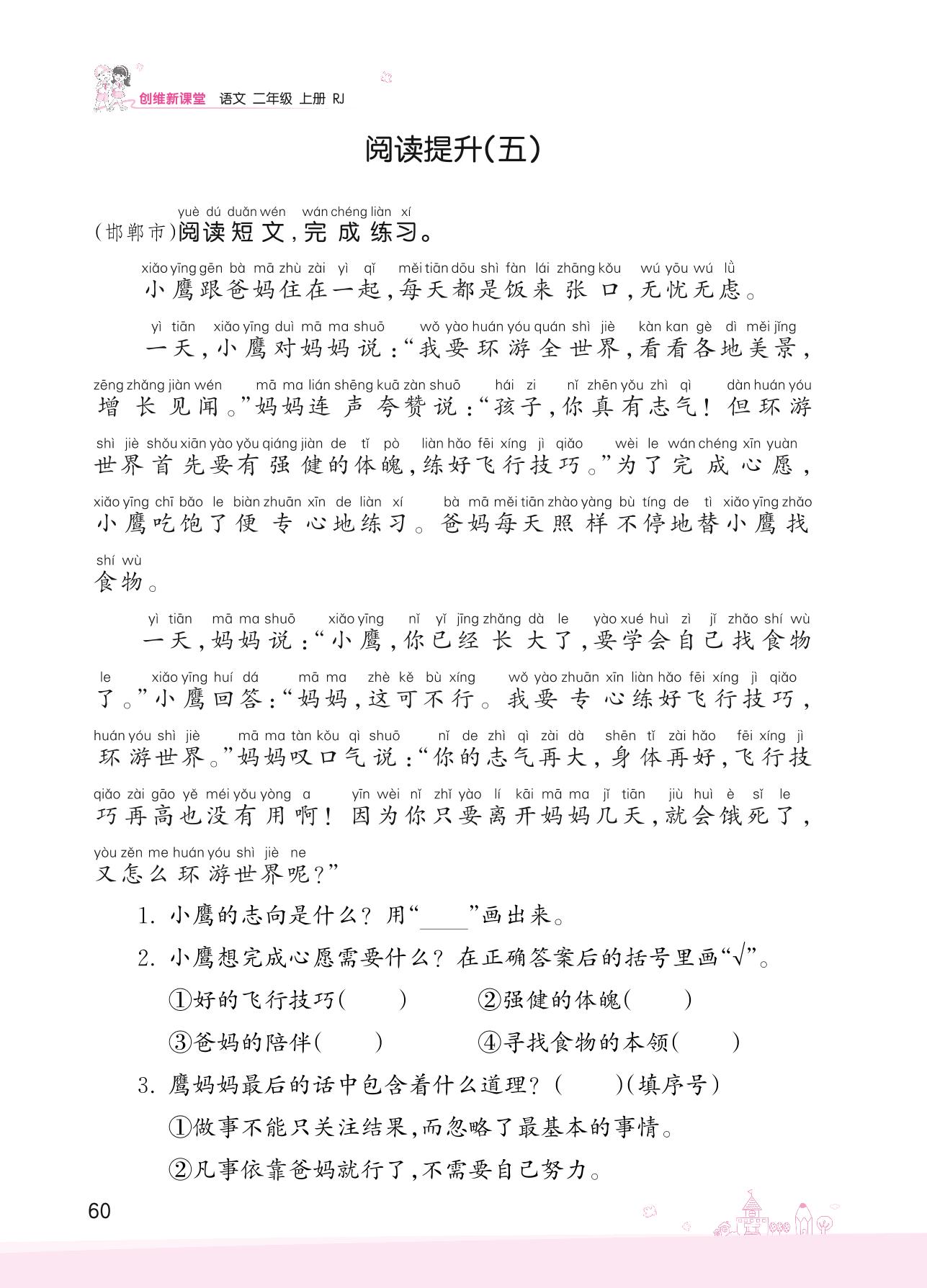 2022上册二年级语文人教版 第五单元 课文——阅读提升(五)