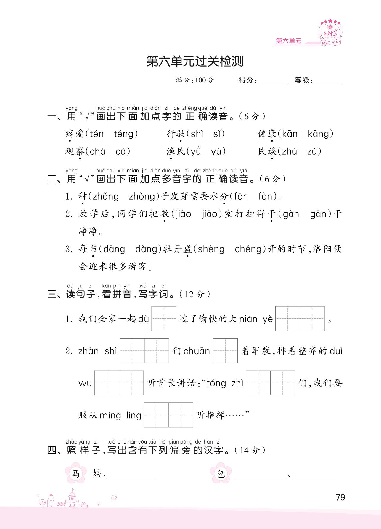 2022上册二年级语文人教版 第六单元过关检测