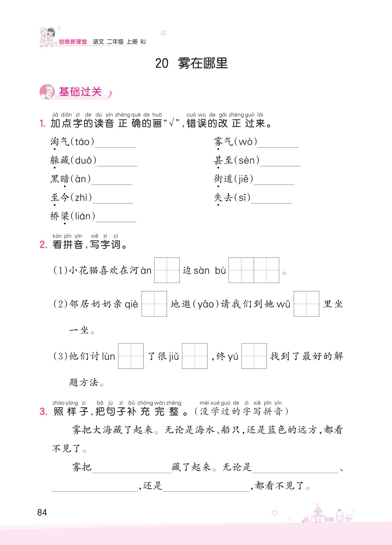 2022上册二年级语文人教版 第七单元 课文——20 雾在哪里