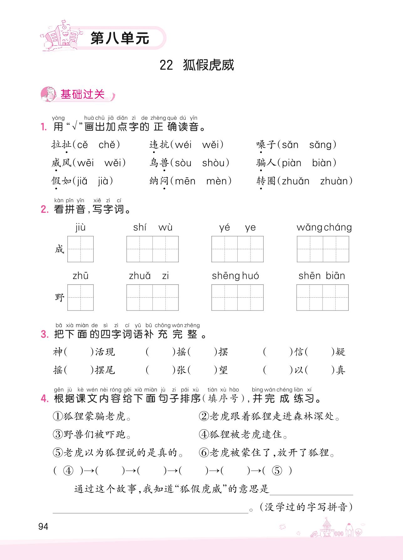 2022上册二年级语文人教版 第八单元 课文——22 狐假虎威