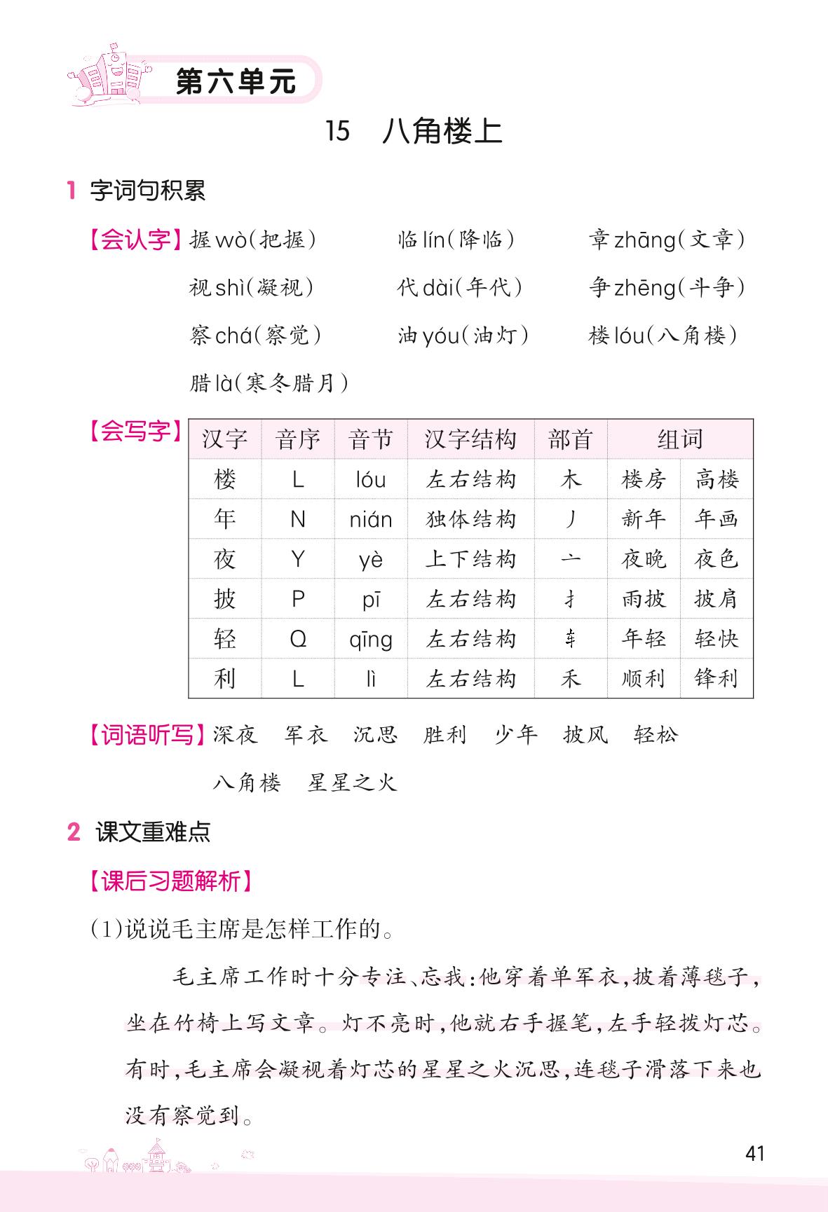 2022上册二年级语文人教版 第六单元——15 八角楼上