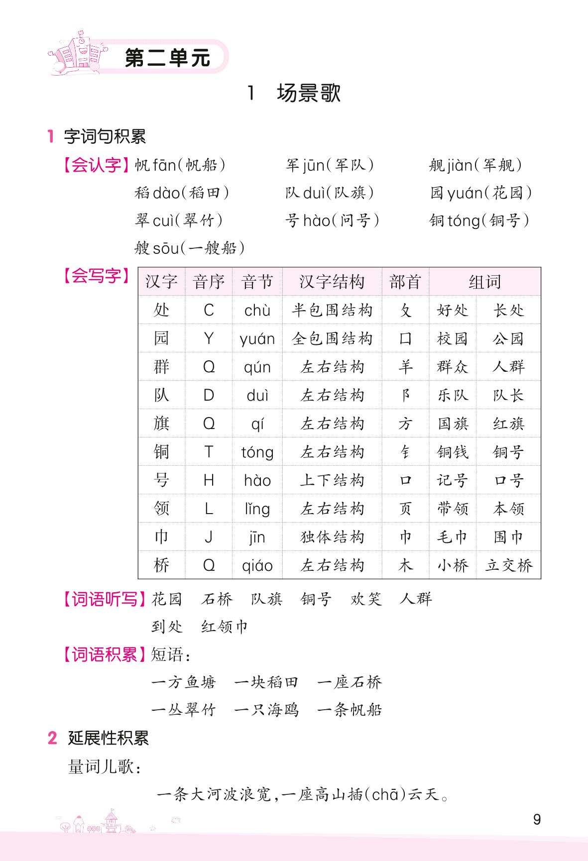 2022上册二年级语文人教版 第二单元——1 场景歌