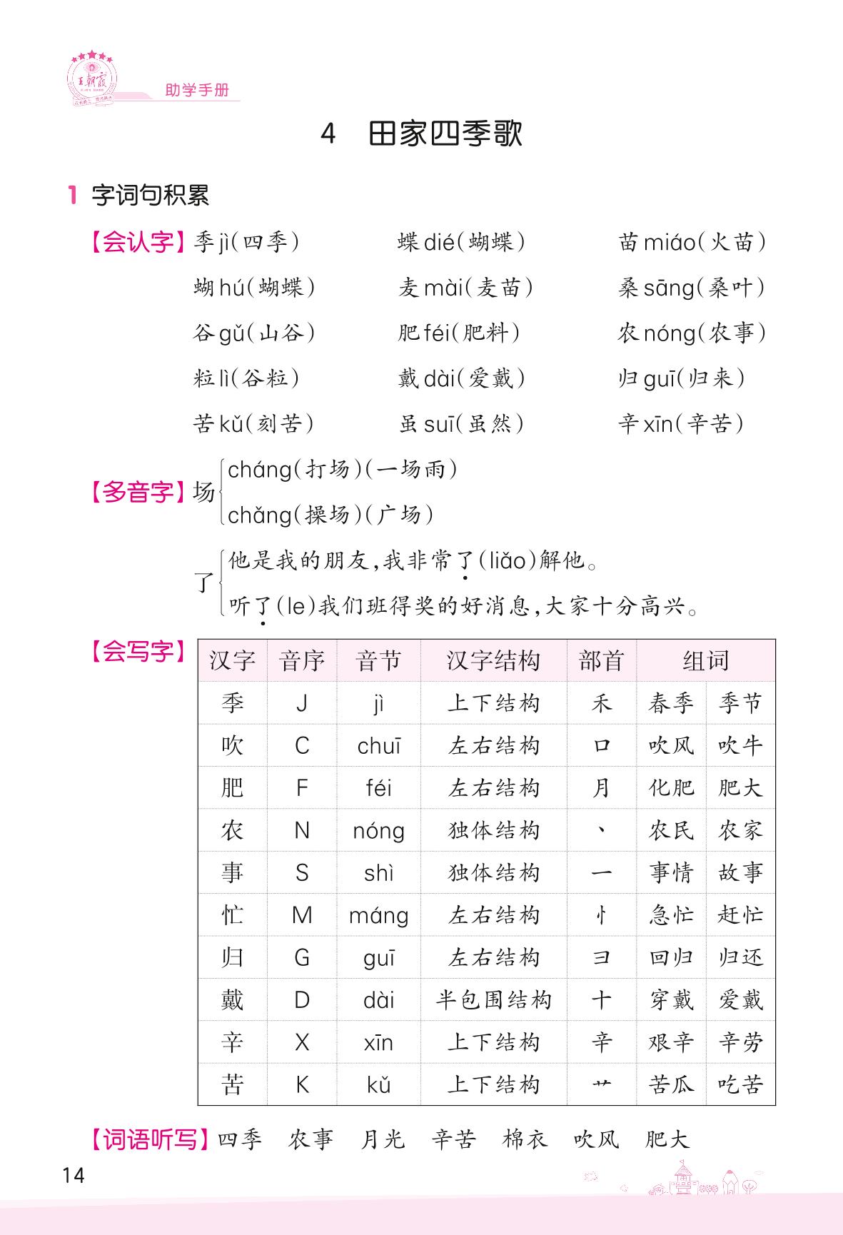 2022上册二年级语文人教版 第二单元——4 田家四季歌