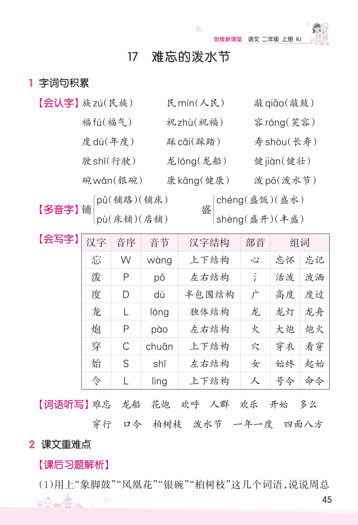 2022上册二年级语文人教版 第六单元——17 难忘的泼水节
