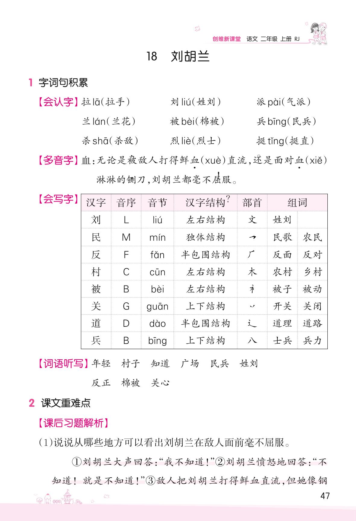 2022上册二年级语文人教版 第六单元——18 刘胡兰
