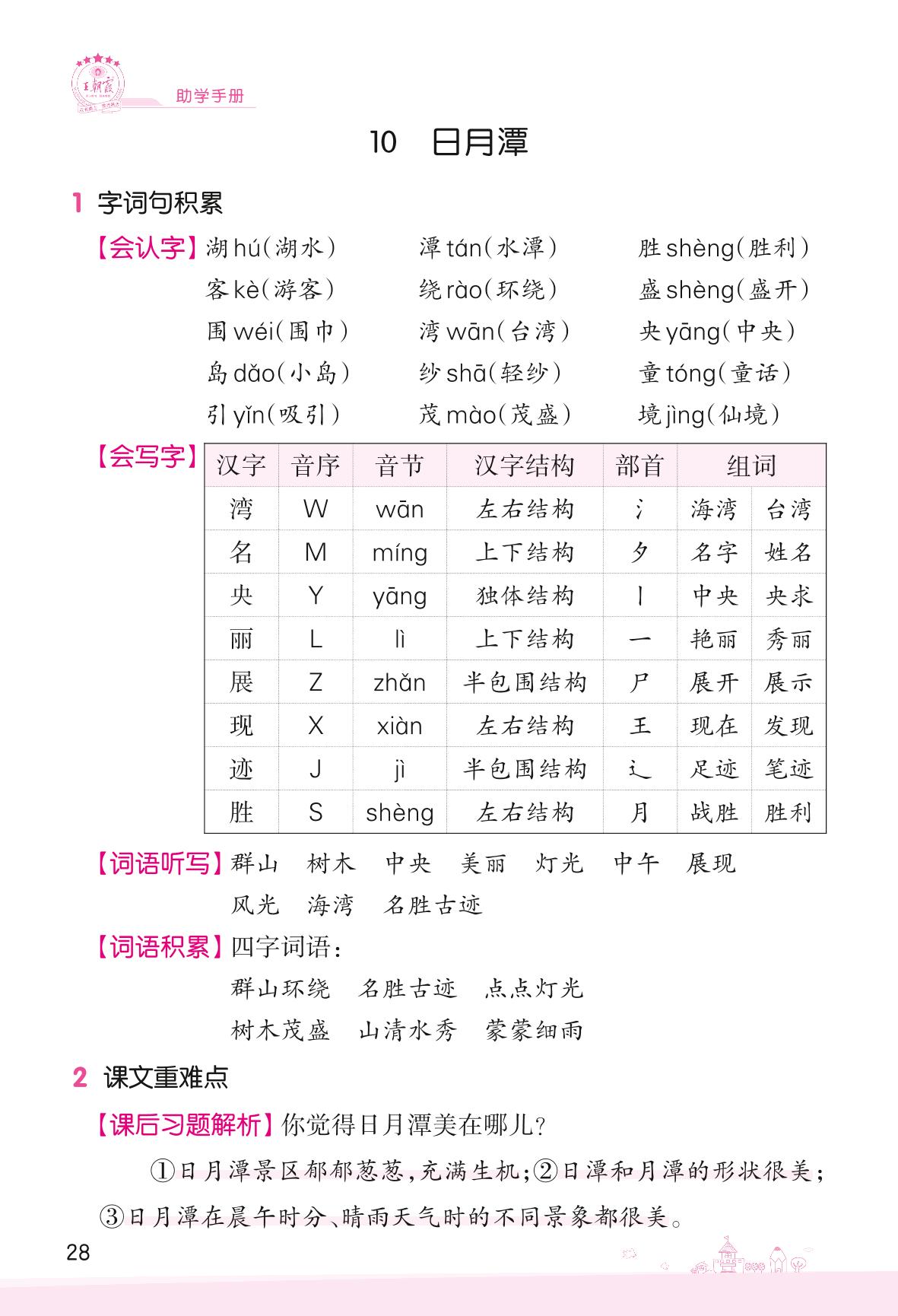 2022上册二年级语文人教版 第四单元——10 日月潭