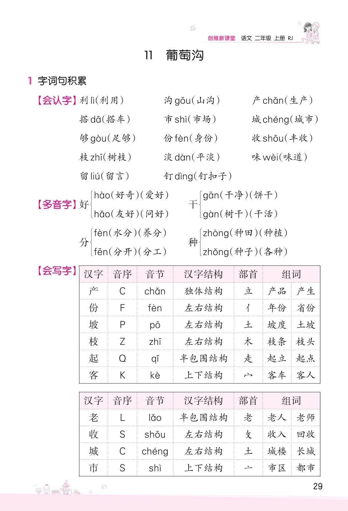 2022上册二年级语文人教版 第四单元——11 葡萄沟