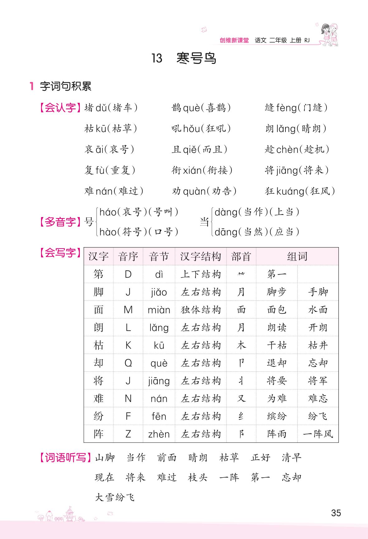 2022上册二年级语文人教版 第五单元——13 寒号鸟