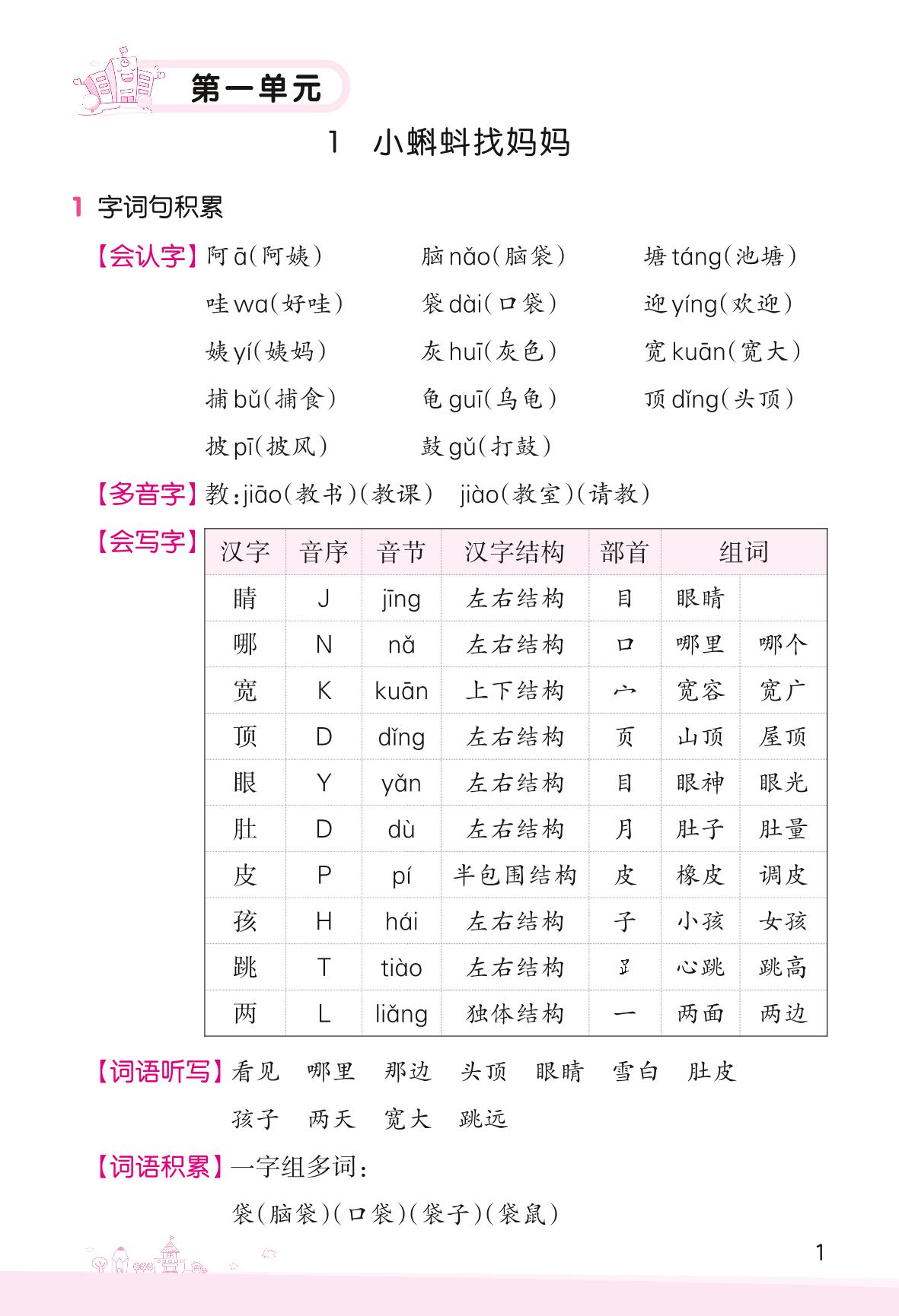 2022上册二年级语文人教版 第一单元——1 小蝌蚪找妈妈