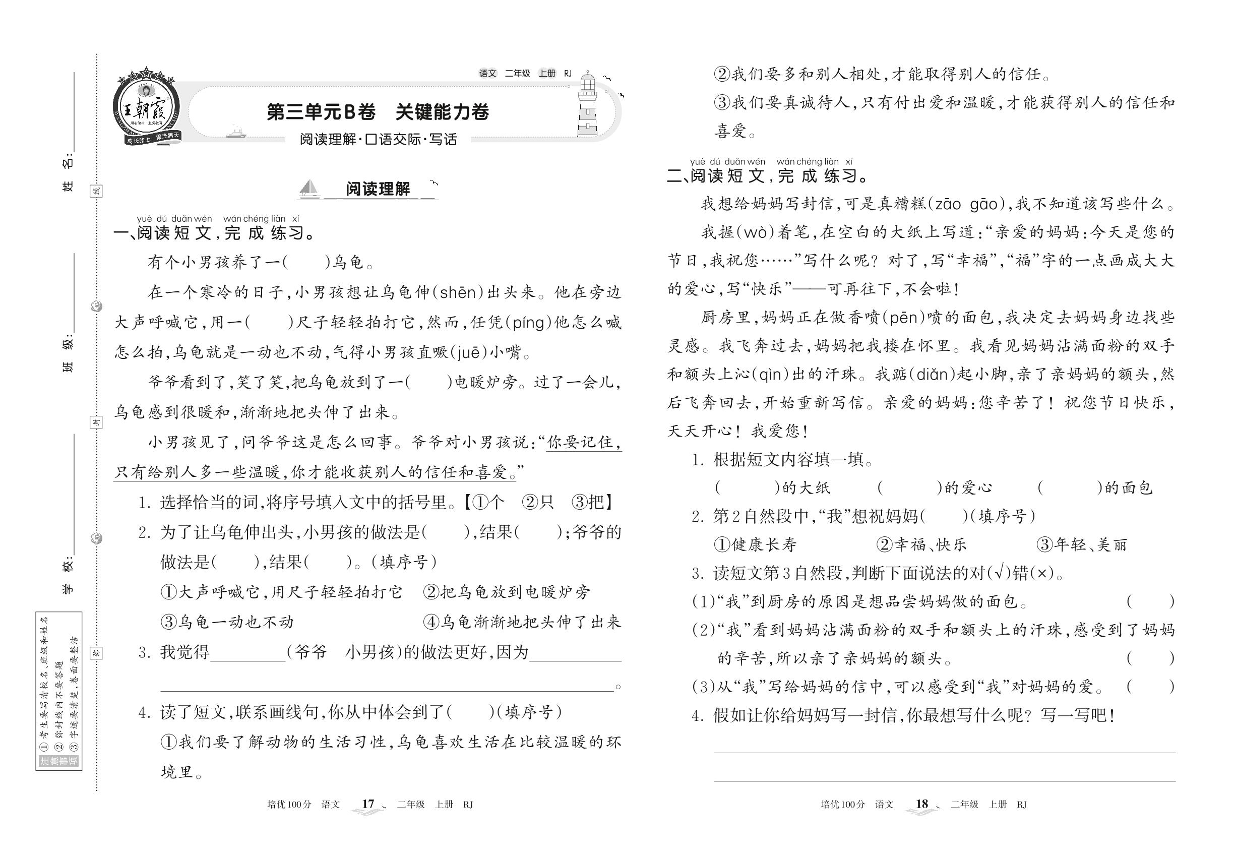 二年级语文人教版上册单元卷