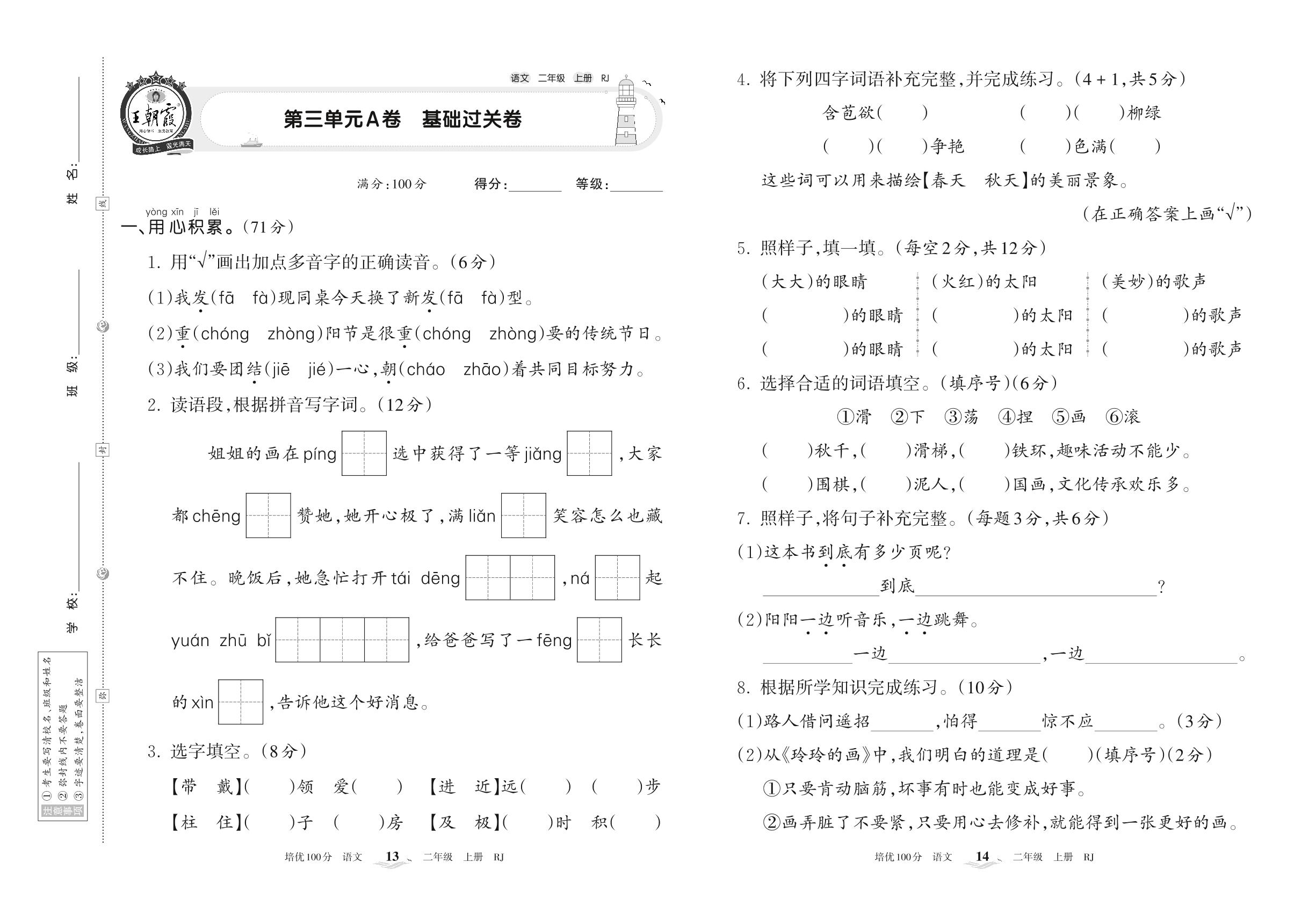 二年级语文人教版上册单元卷