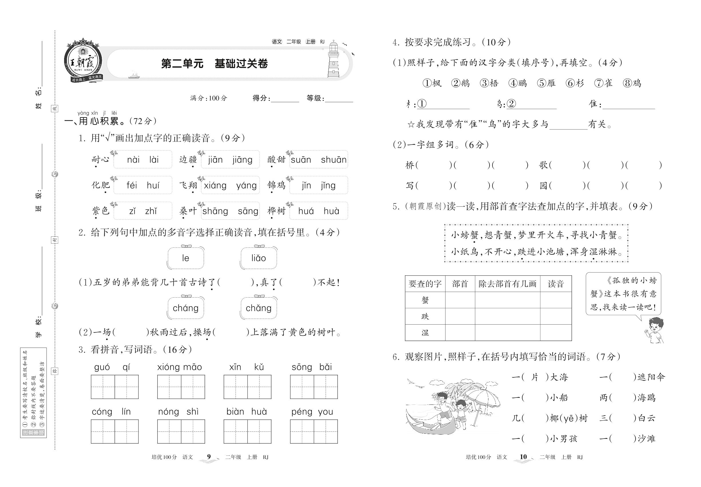 2022上册二年级语文人教版 第二单元 基础过关卷