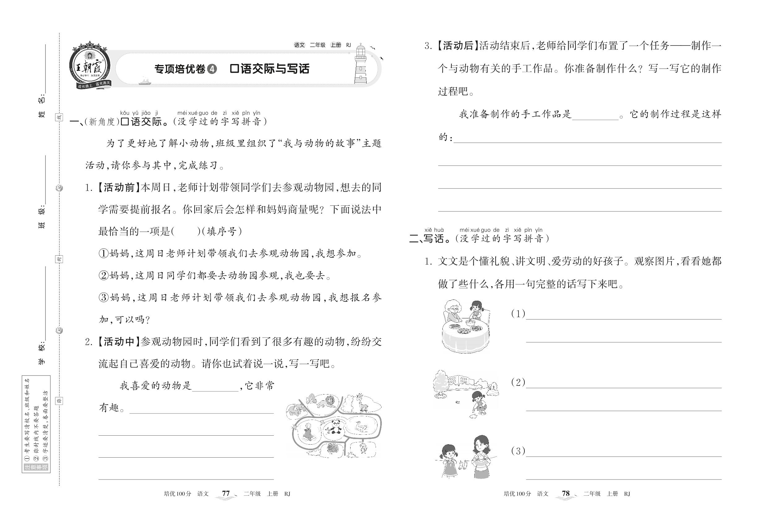 2022上册二年级语文人教版 专项培优卷4 口语交际与写话