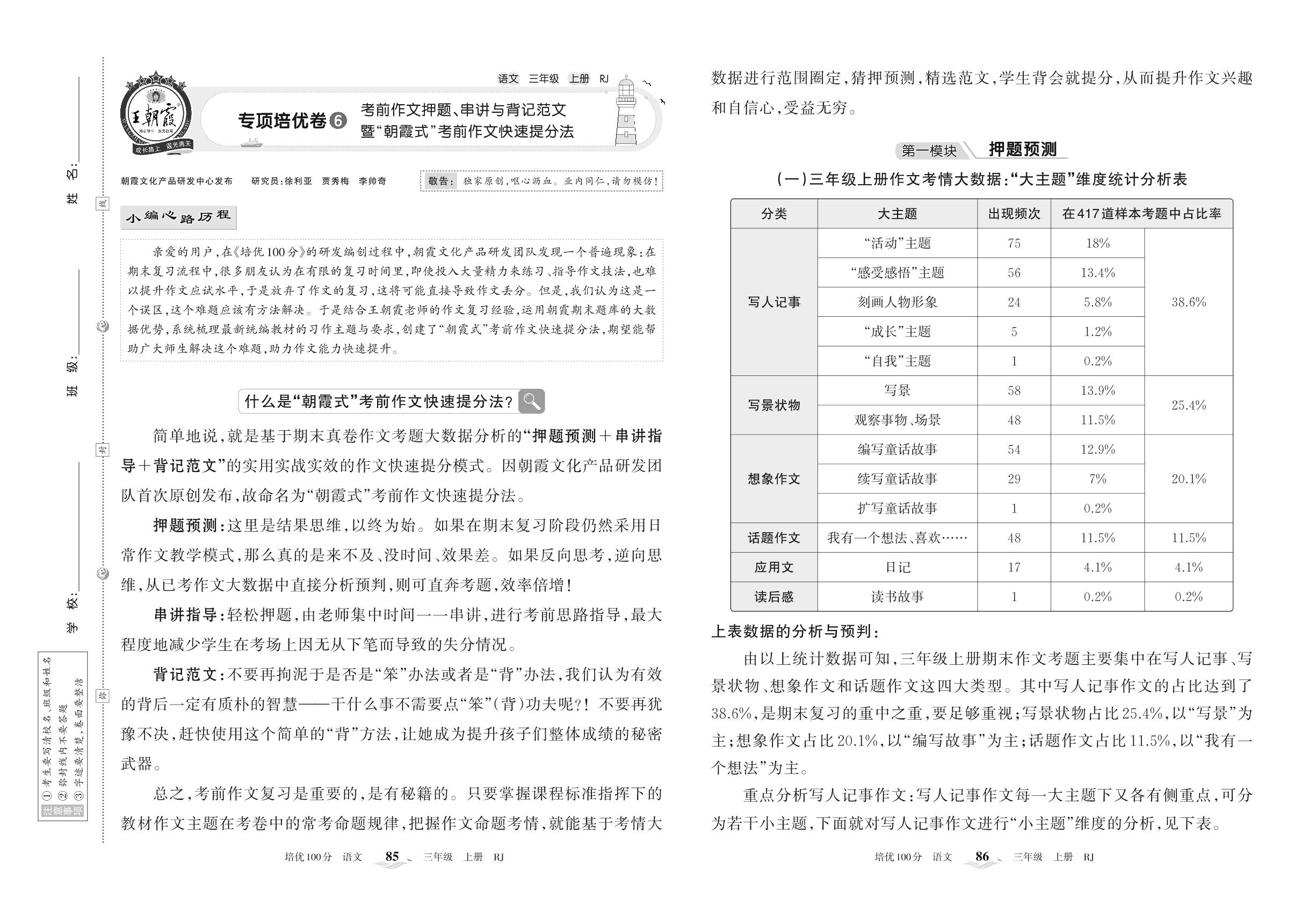 2022上册三年级语文人教版 专项培优卷6 考前作文押题、串讲与背记范文暨“朝霞式”考前作文快速提分法