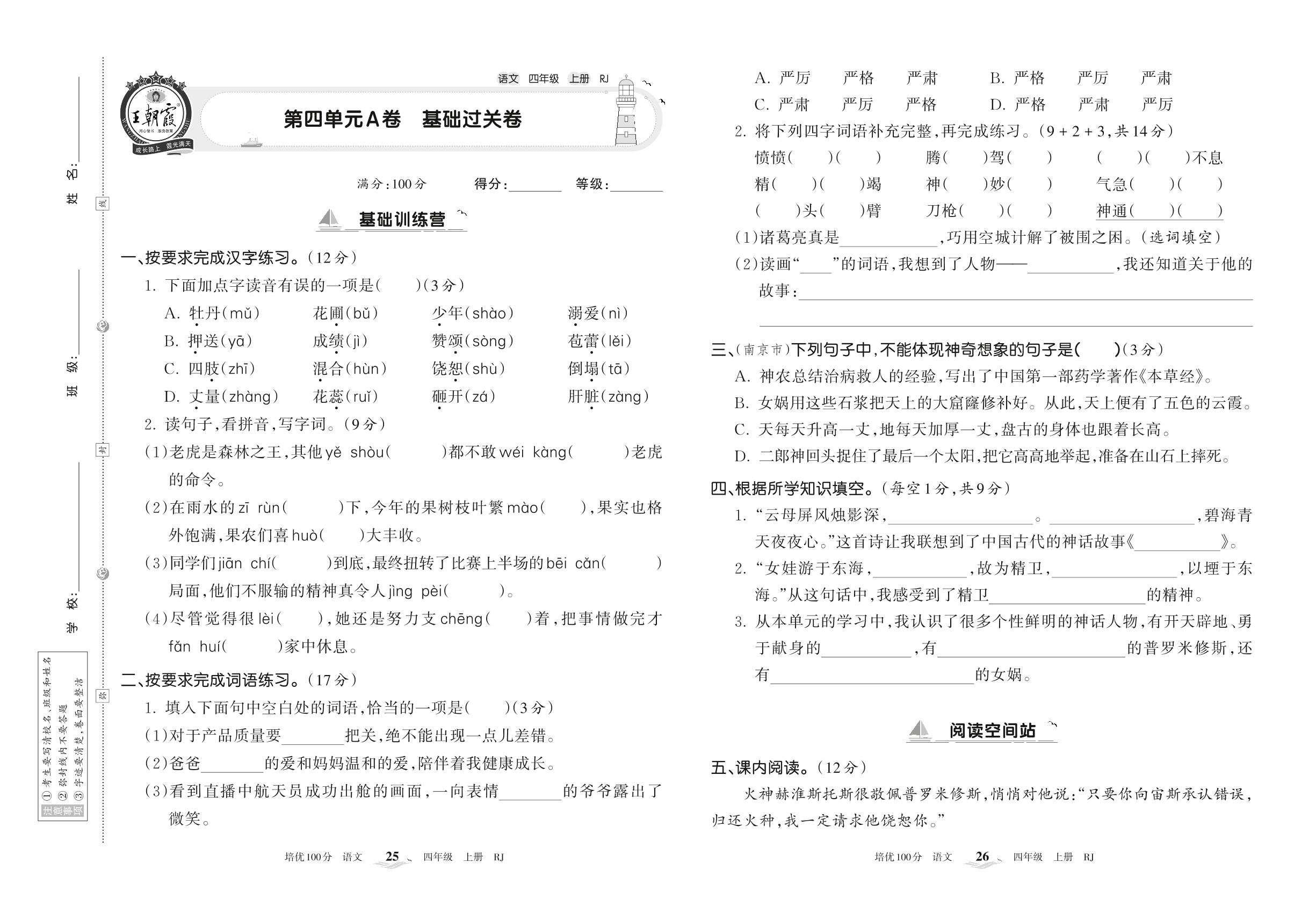 四年级语文人教版上册单元卷