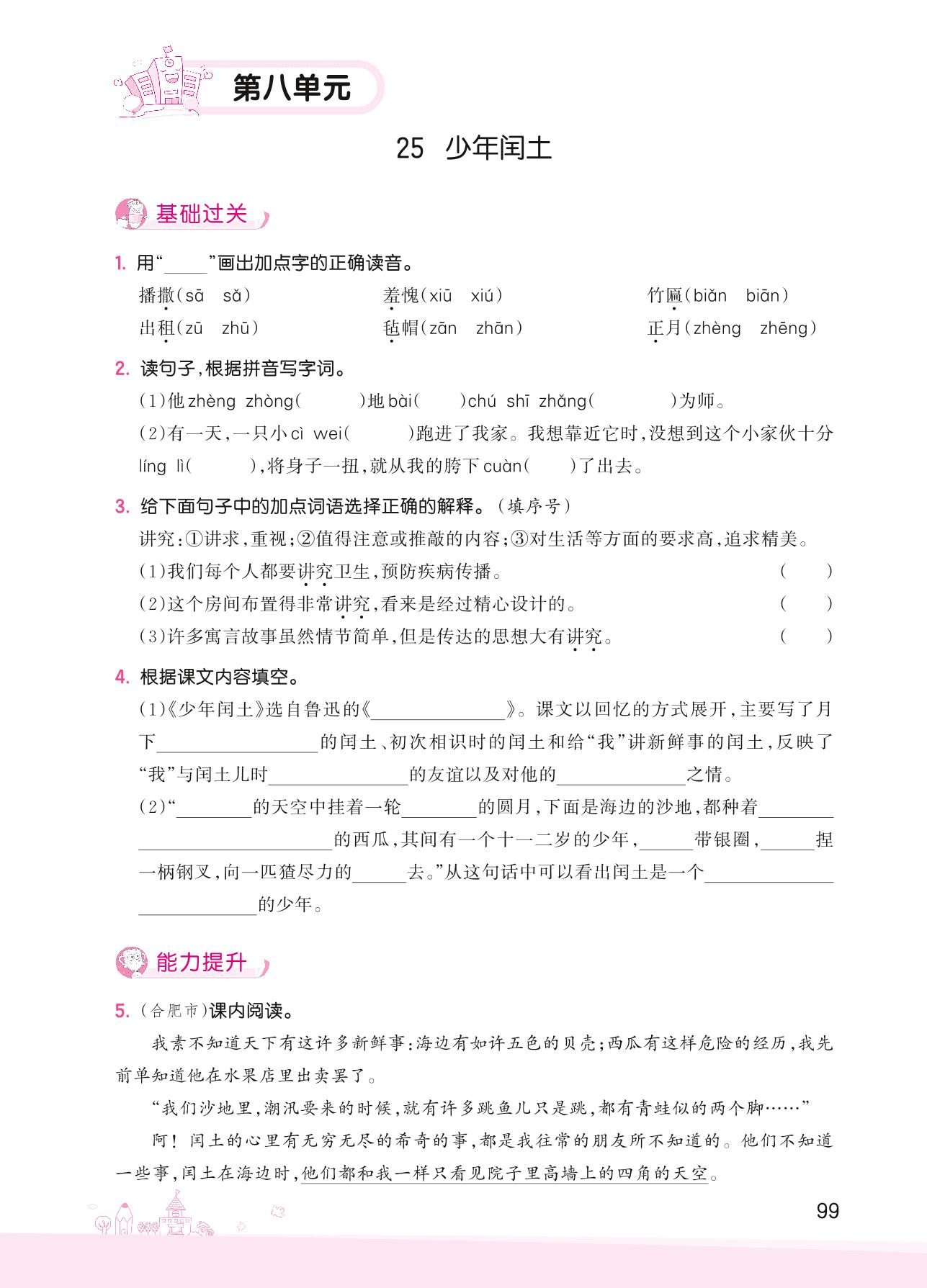 2022上册六年级语文人教版 第八单元——25 少年闰土