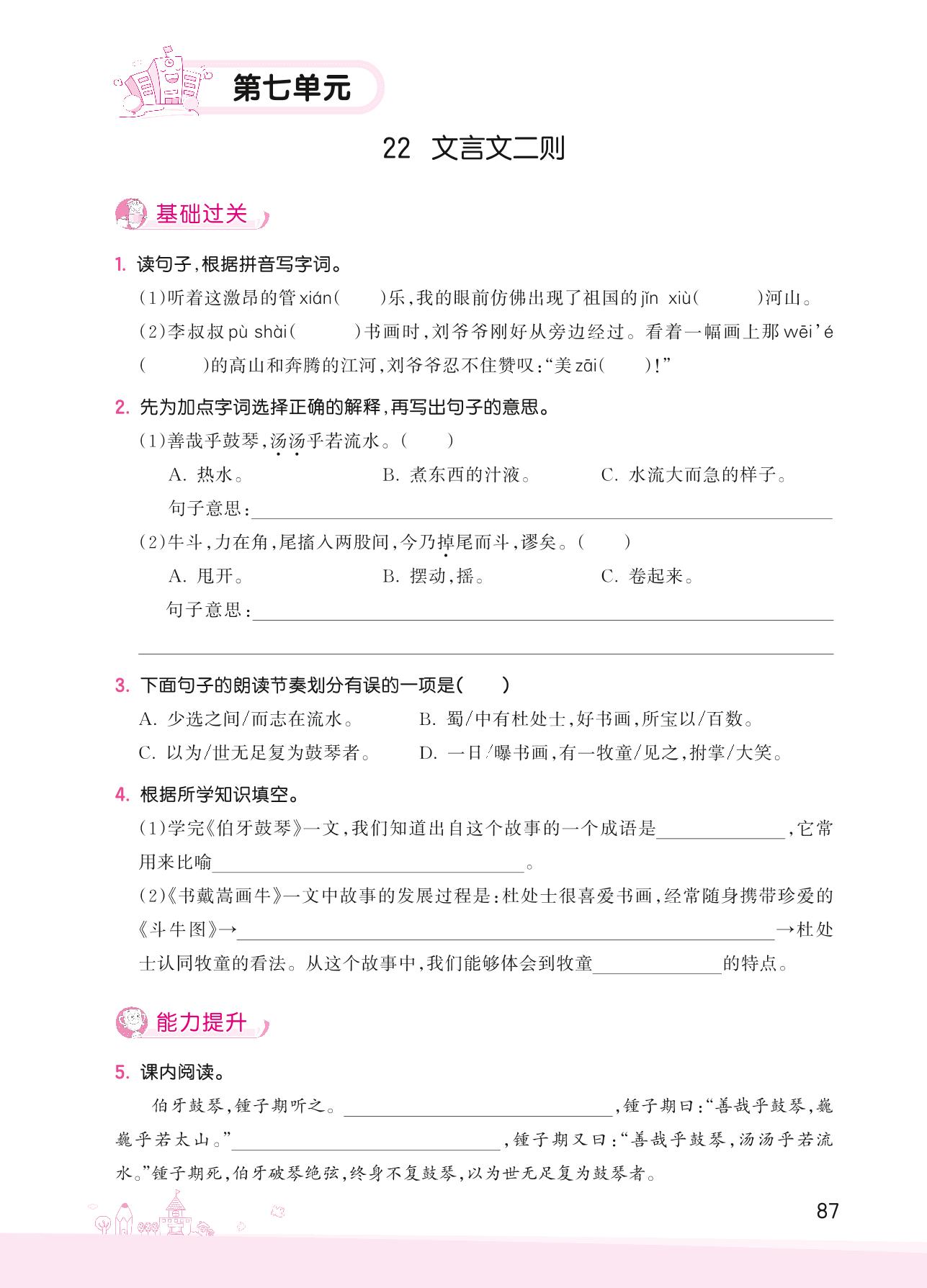 2022上册六年级语文人教版 第七单元——22 文言文二则