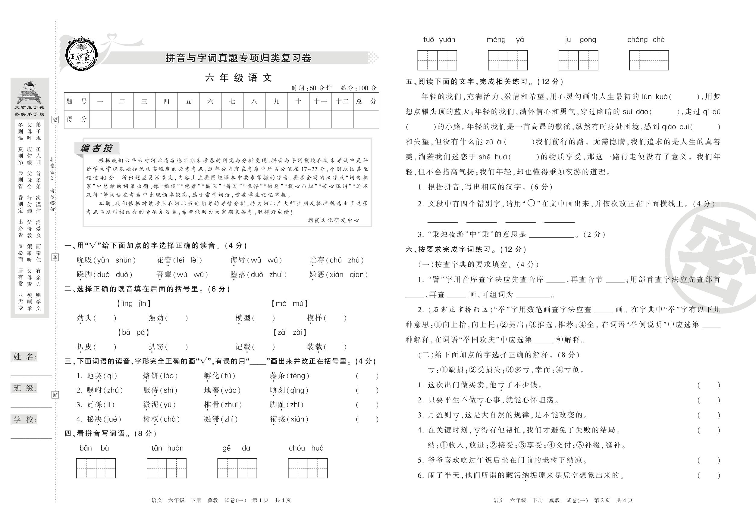 王朝霞期末专项卷六年级下册语文(冀教版)_R21080253231【1】