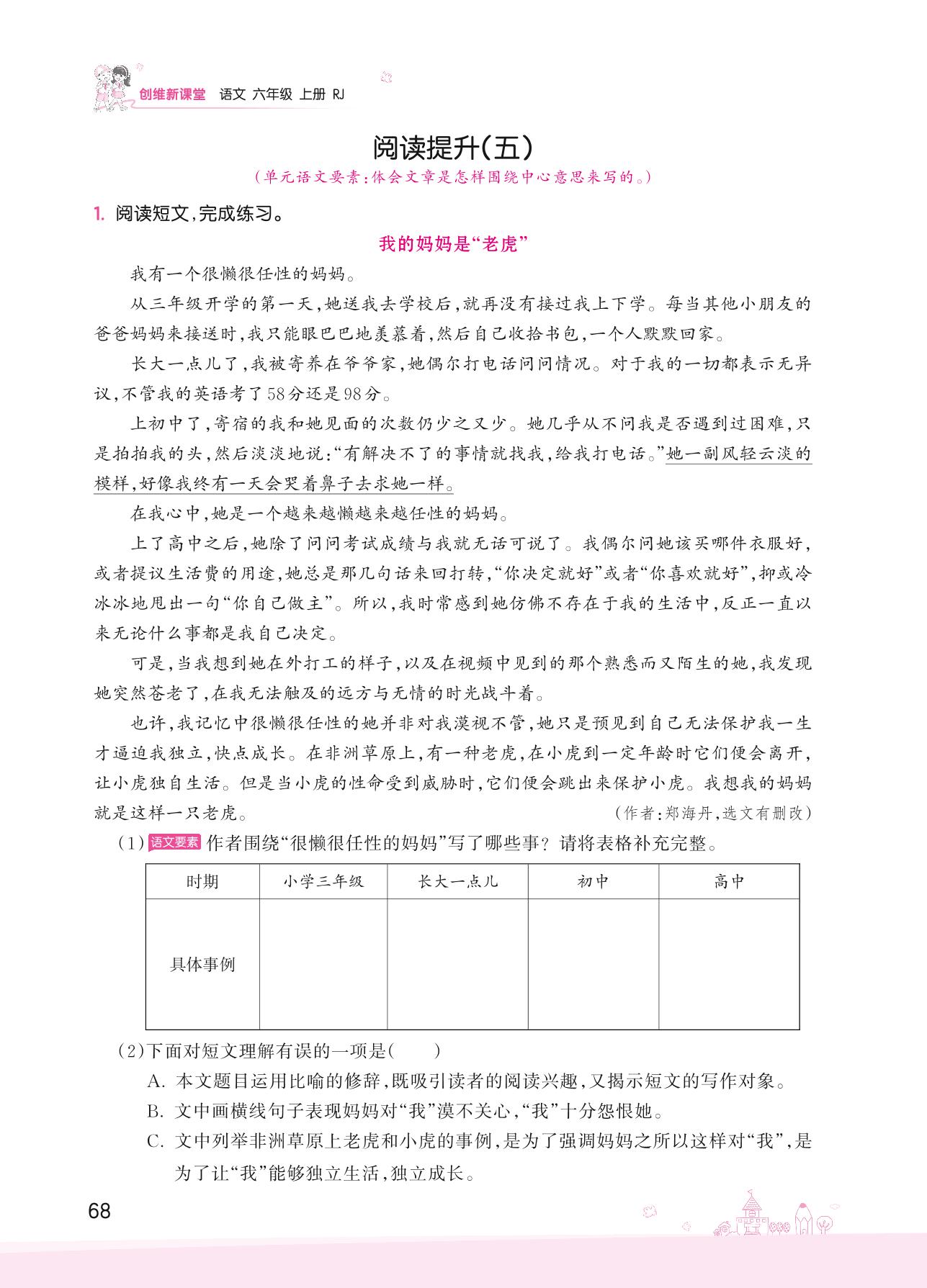 2022上册六年级语文人教版 第五单元——阅读提升(五)