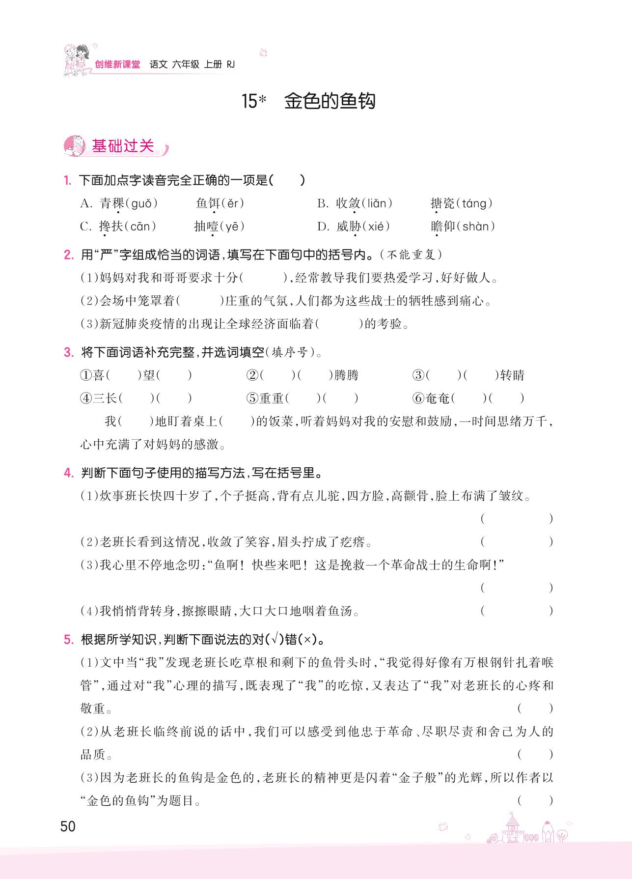 2022上册六年级语文人教版 第四单元——15 金色的鱼钩
