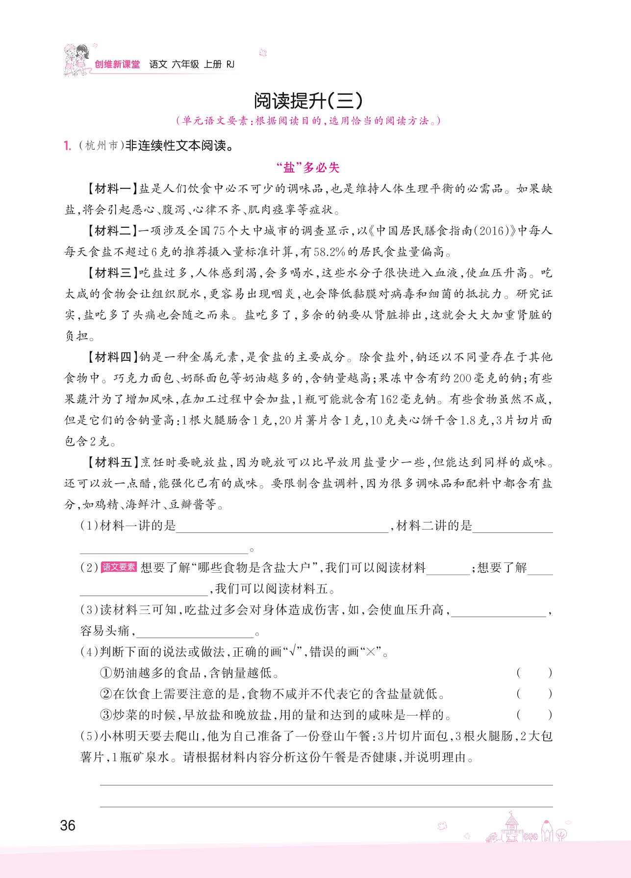 2022上册六年级语文人教版 第三单元——阅读提升(三)