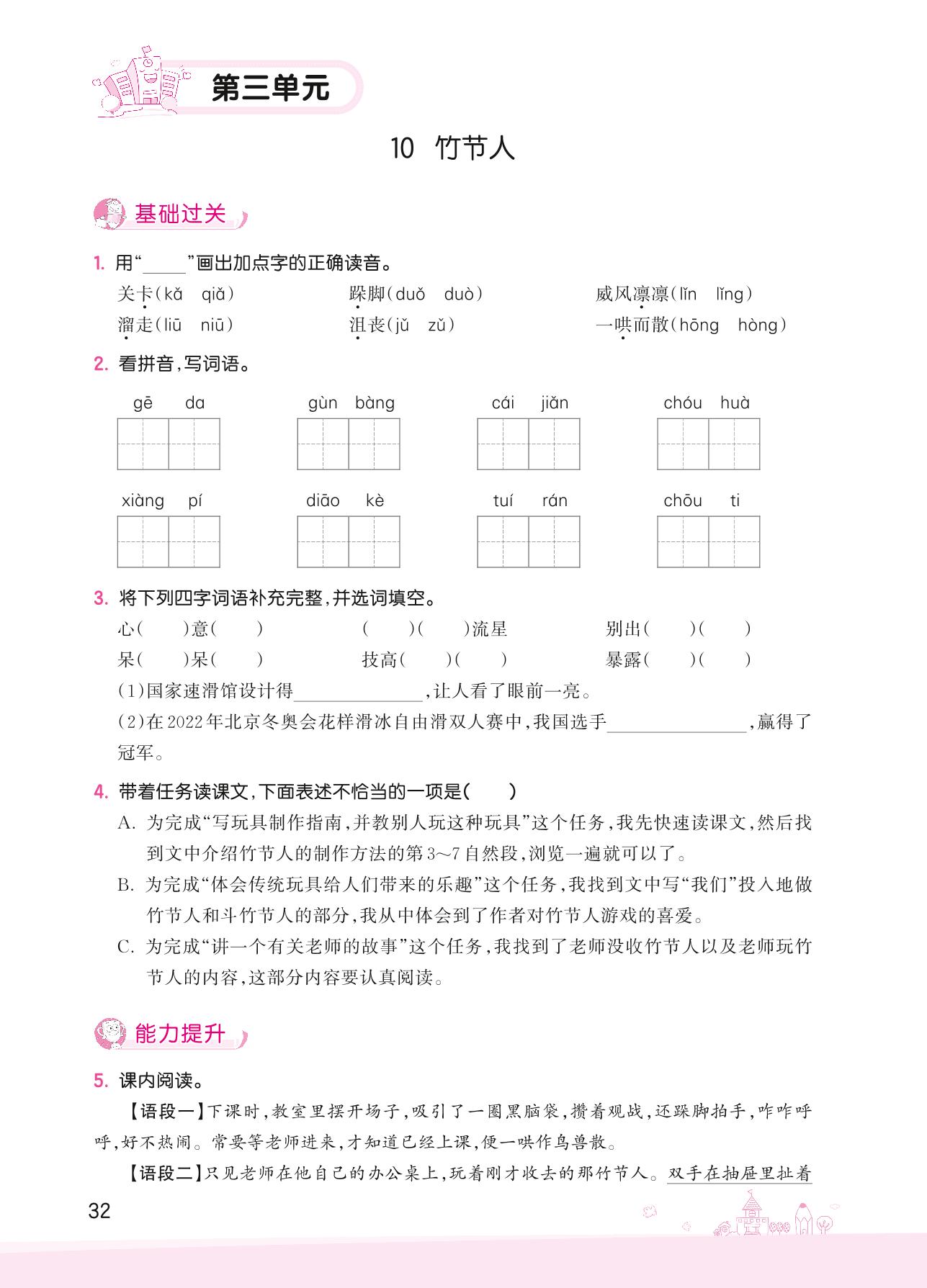 2022上册六年级语文人教版 第三单元——10 竹节人