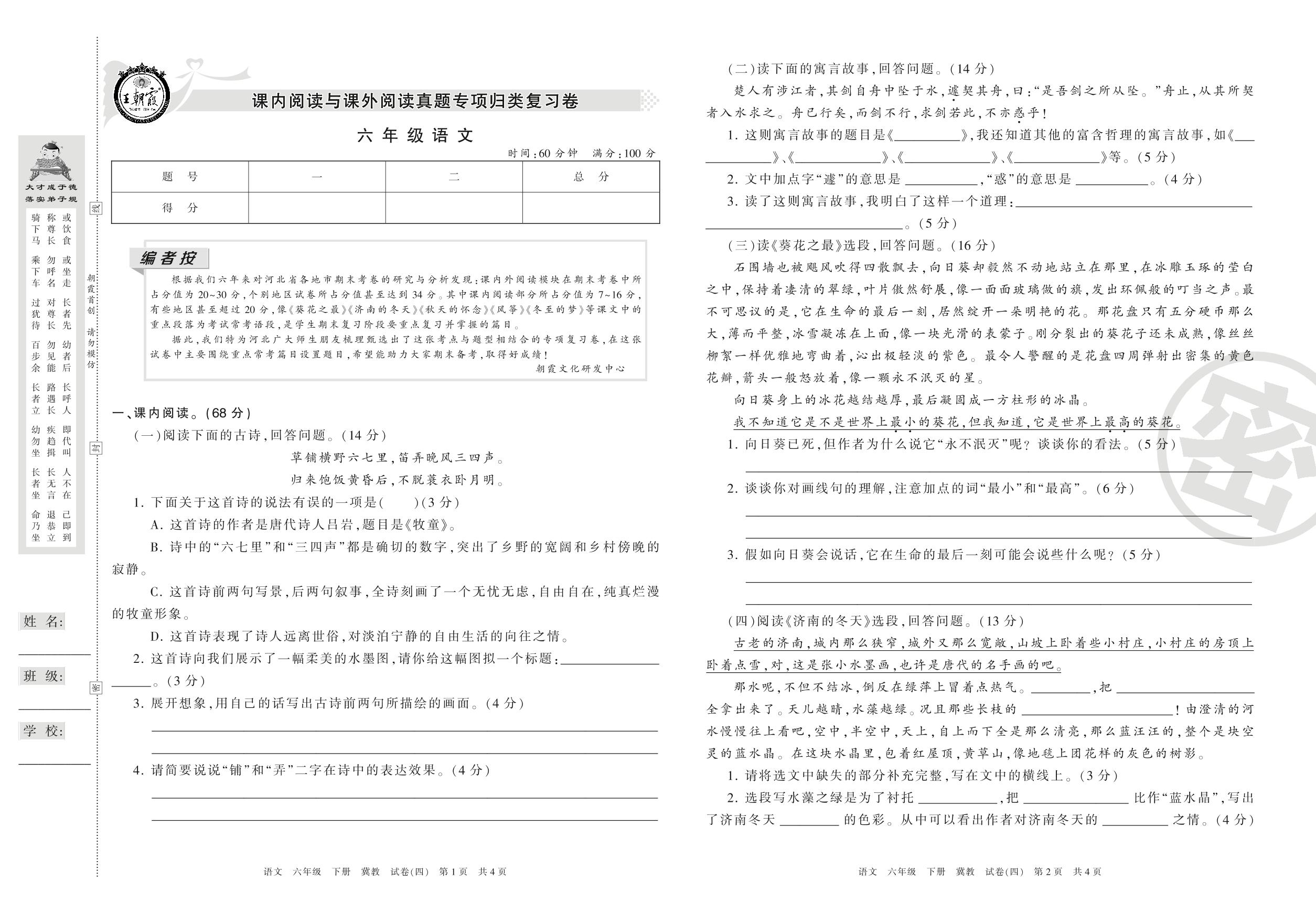 王朝霞期末专项卷六年级下册语文(冀教版)_R21080253251【4】