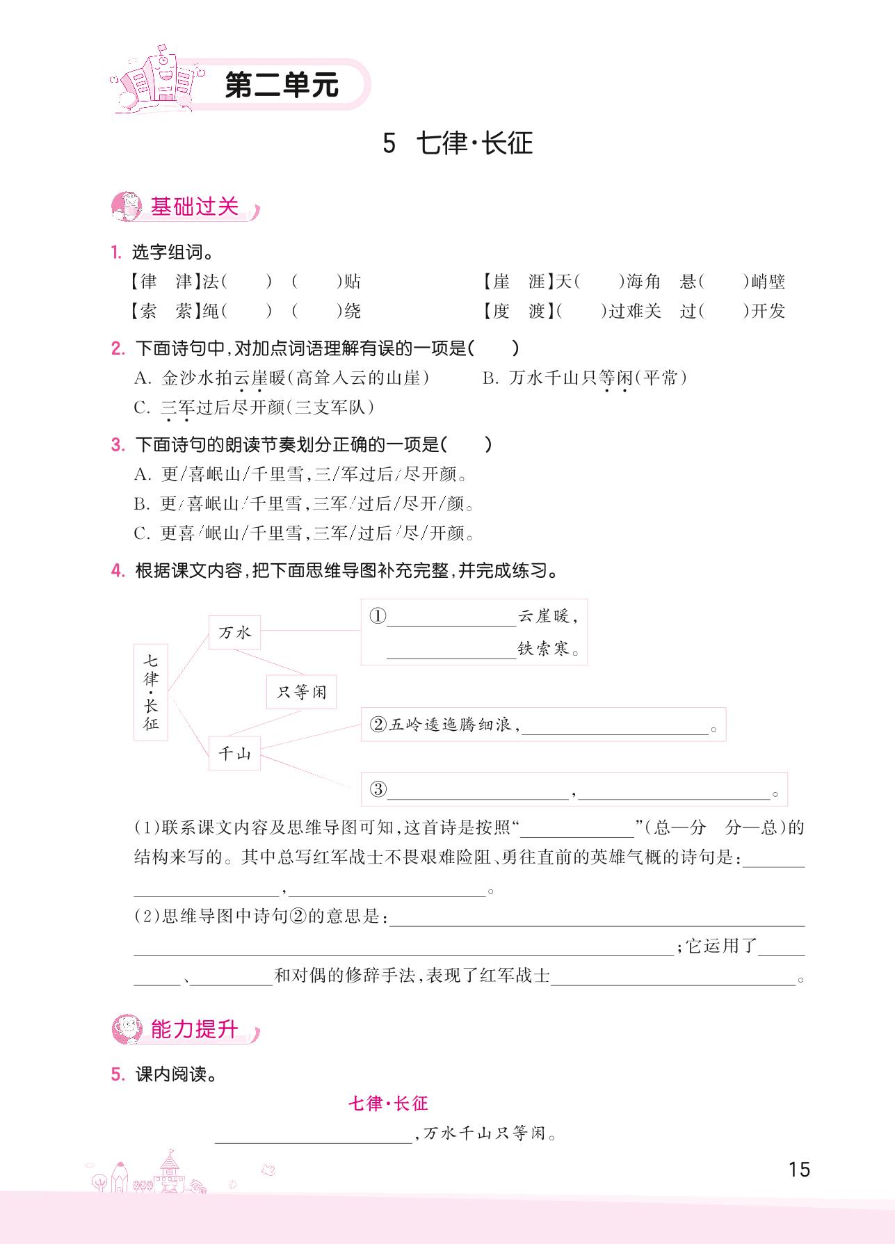 2022上册六年级语文人教版 第二单元——5 七律·长征